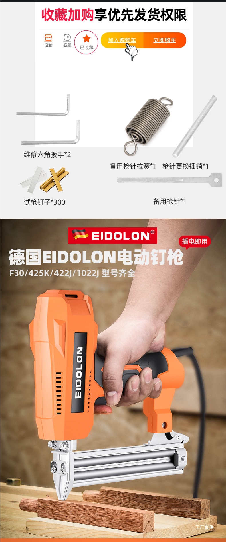 Edlen Electric Straight Nail Gun 홈 플러그인 220V Martin Carpenter U-Shot F30 Rack Nail Grab 특별 아티팩트 구매스토어 가기