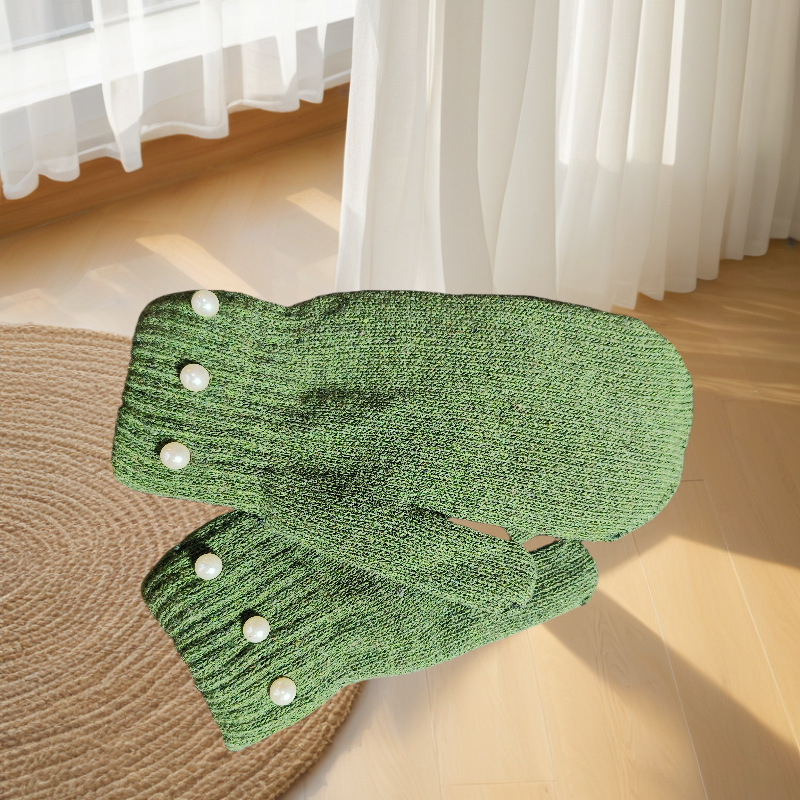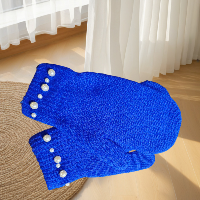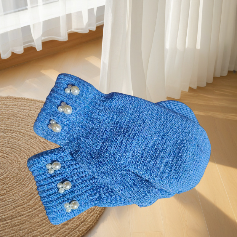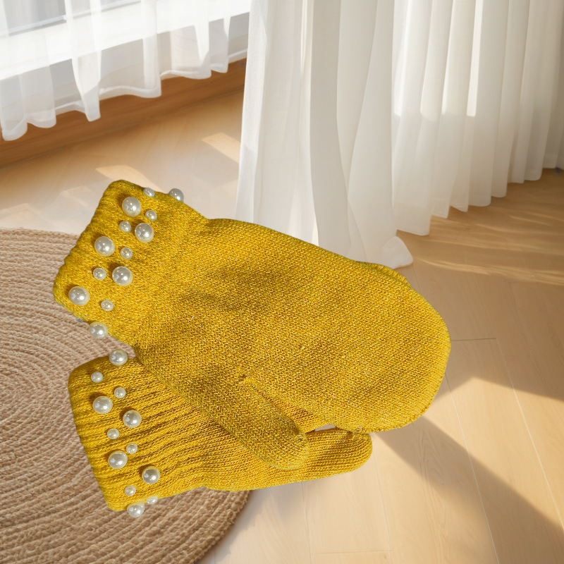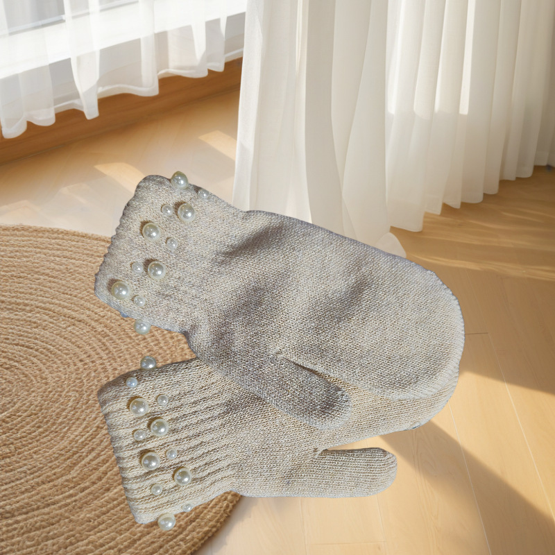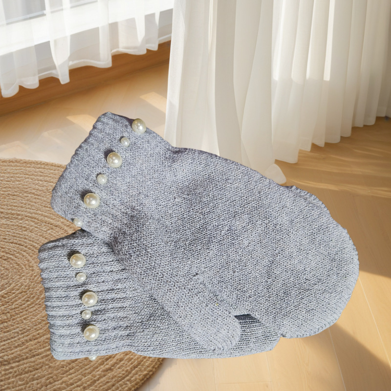 대외 무역 새로운 가을과 겨울 단색 니트 장갑 반 손가락 승마 진주 장식 유행 따뜻한 장갑은 로고를 추가 할 수 있습니다스토어 가기