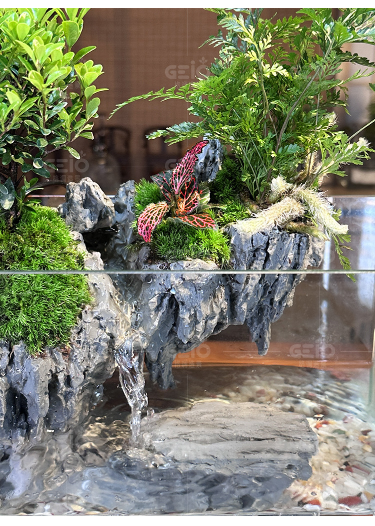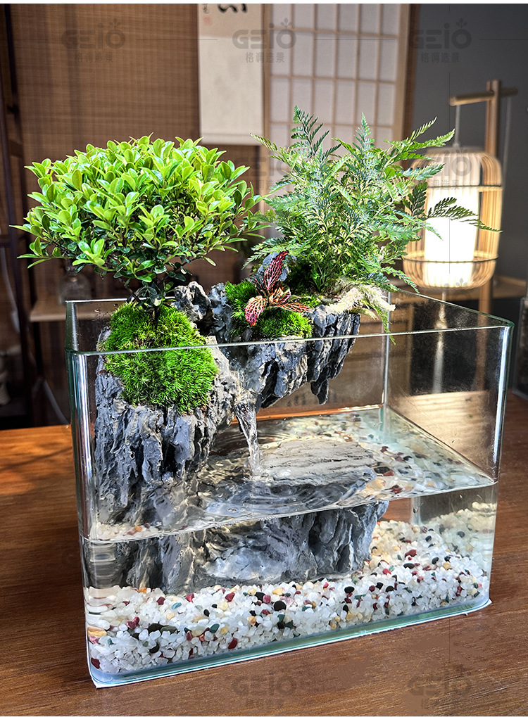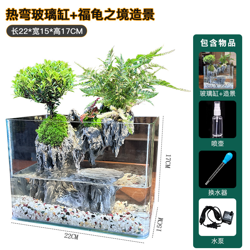 에코 조경 유리 어항 미세 경관 녹색 식물 데스크탑 소형 필터 통합 순환 거실 물과 육상 거북 탱크스토어 가기