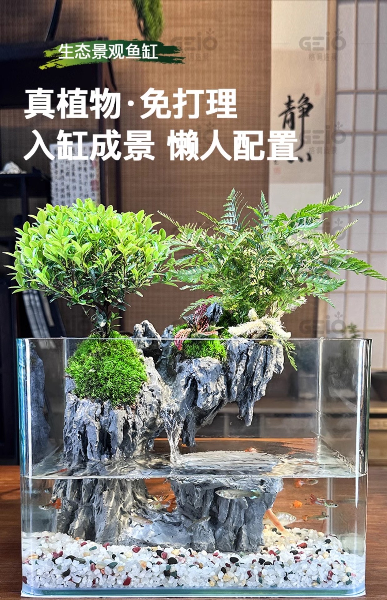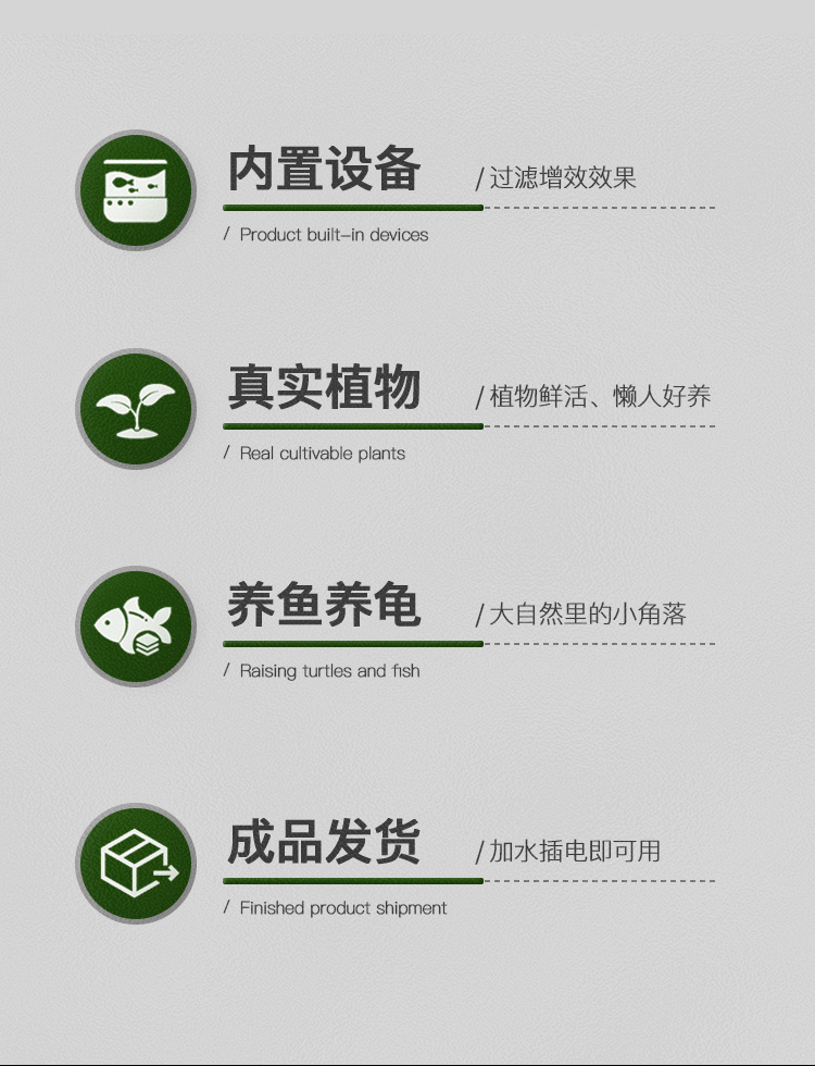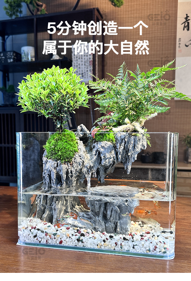 에코 조경 유리 어항 미세 경관 녹색 식물 데스크탑 소형 필터 통합 순환 거실 물과 육상 거북 탱크