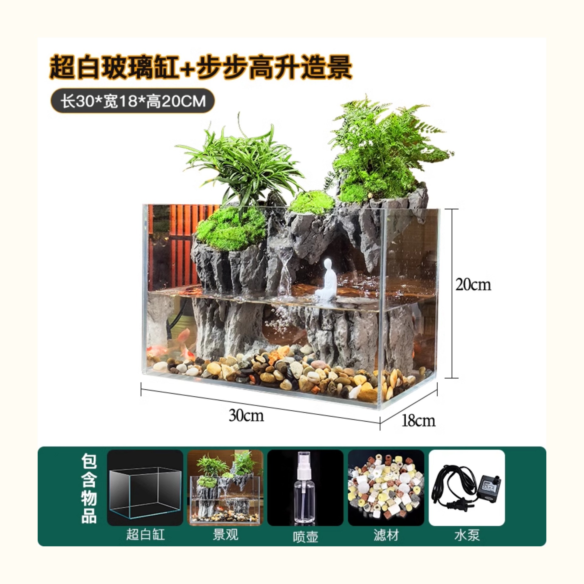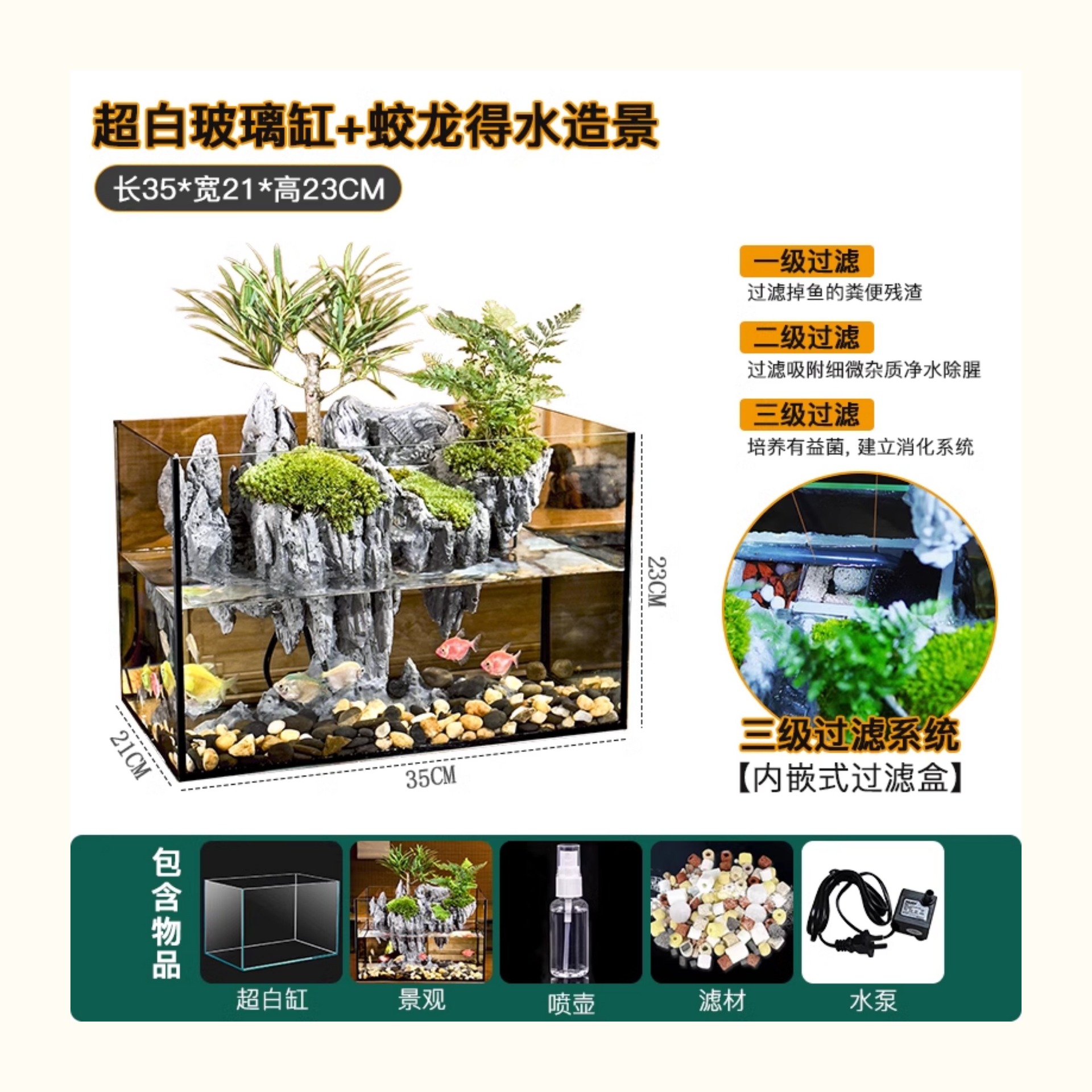 • **럭키 터틀 렐름(22*15*17CM) + 유지 관리 도구 물고기/거북이 탱크**