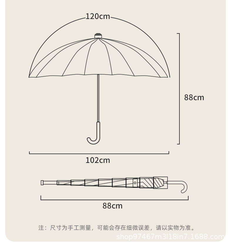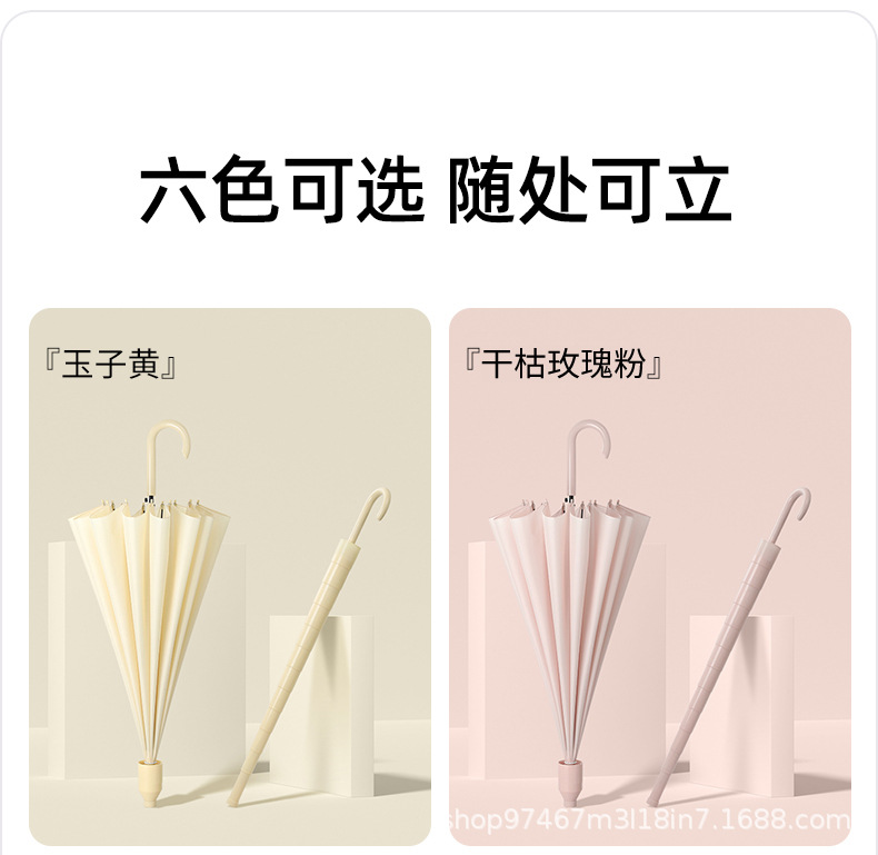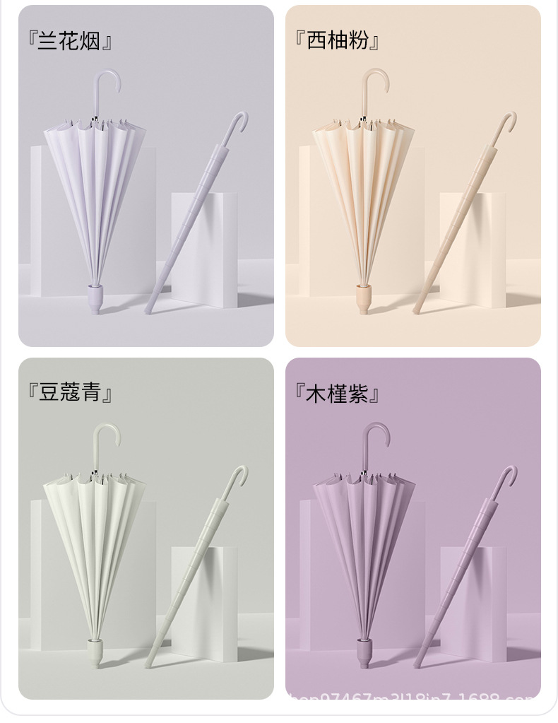 16 뼈 자동 여성용 스트레이트 로드 우산 컬러 방수 우산 곡선 핸들 방비 바람 지원 광고 우산 세대스토어 가기