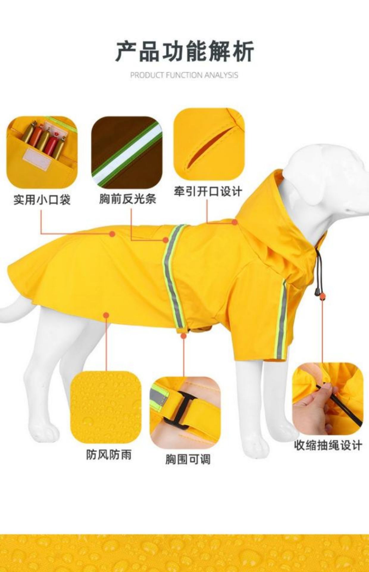 개 비옷 케이프 캐노피 반사 스트립 애완 동물 방풍 방수 골든 리트리버 래브라도 차이 개 코기 후드 판초