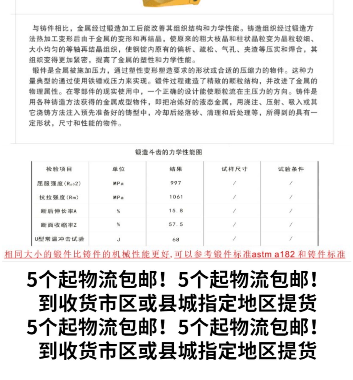 • SANY55/60 단조 타인, 5개 이상 사용 시 핀 무료 제공
