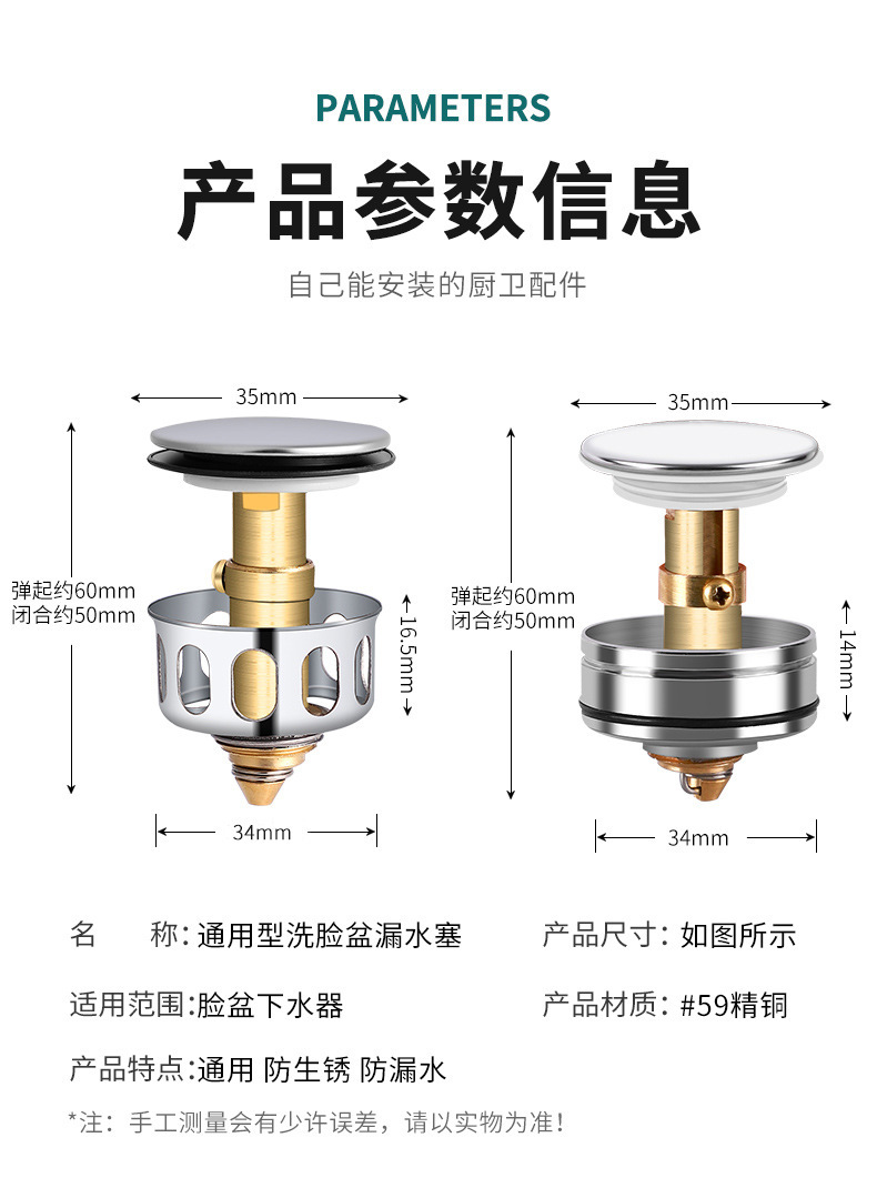 ♔ 세면대 세면대 누수 플러그 세면대 배수관 팝업 코어 푸시형 스테인레스 스틸 플립 플레이트 포함
