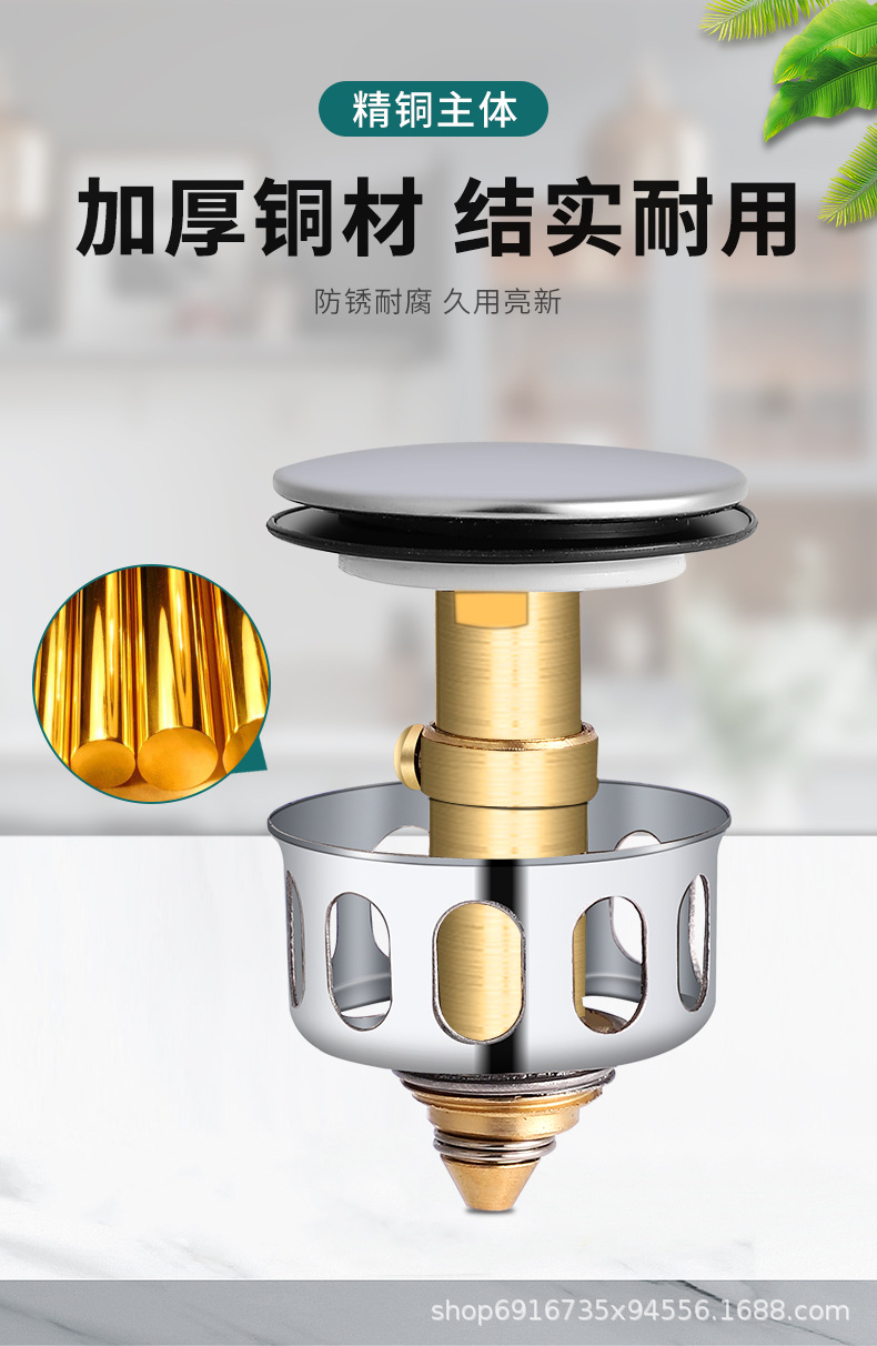 ♔ 세면대 세면대 누수 플러그 세면대 배수관 팝업 코어 푸시형 스테인레스 스틸 플립 플레이트 포함스토어 가기