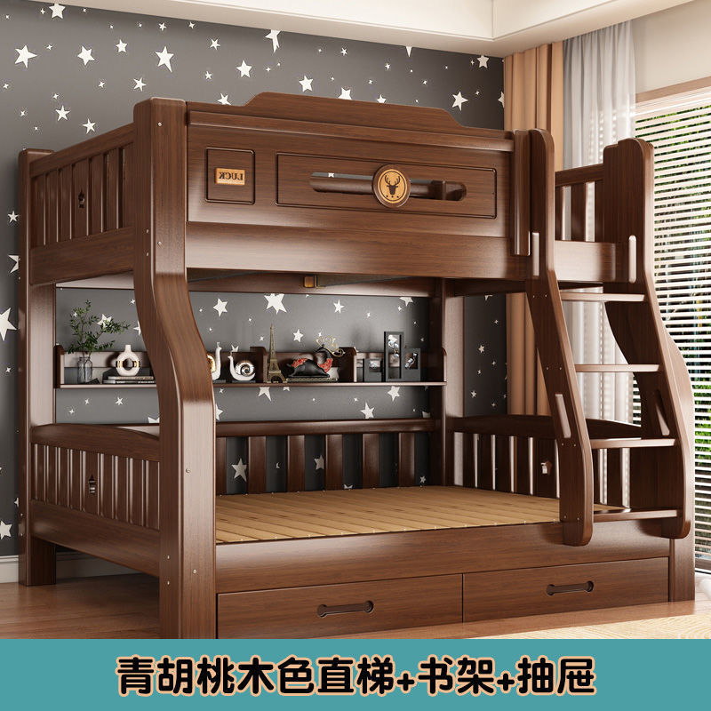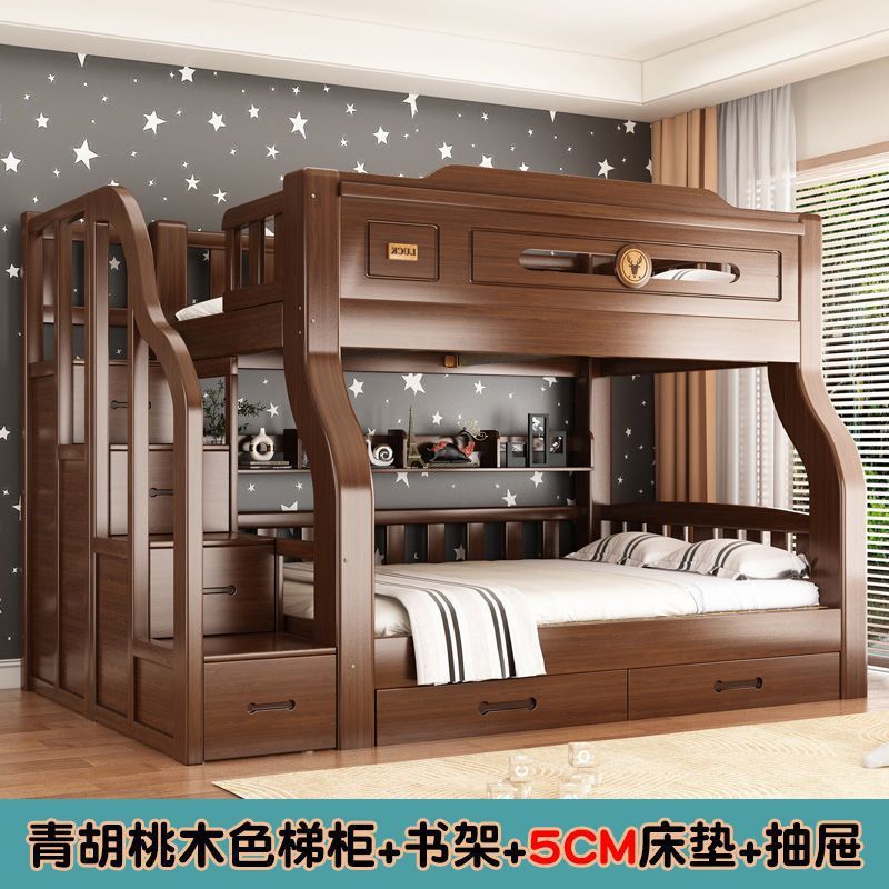 단단한 나무 굵은 침대 작은 아파트 어린이 어머니 침대 가구 다기능 높은 낮은 침대 기숙사 이층 침대