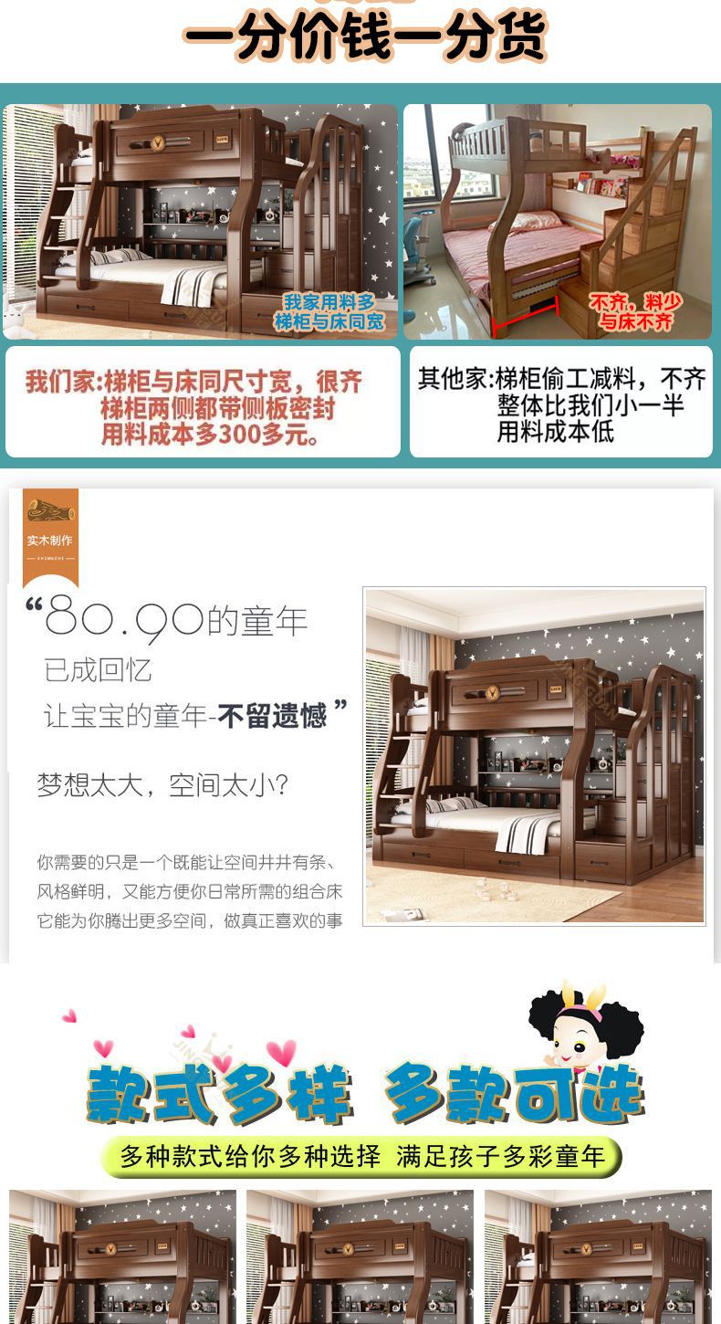 단단한 나무 굵은 침대 작은 아파트 어린이 어머니 침대 가구 다기능 높은 낮은 침대 기숙사 이층 침대스토어 가기
