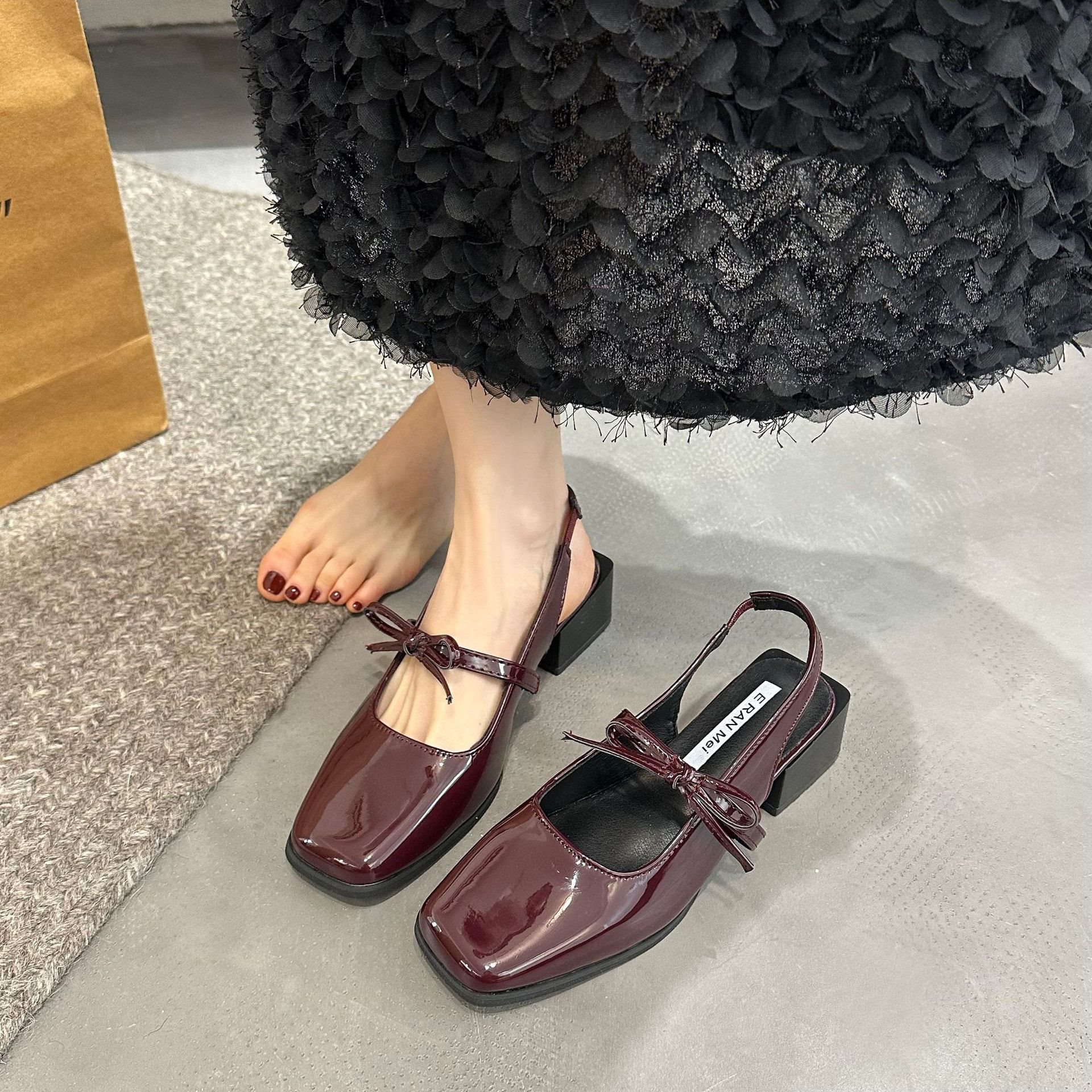 신발 싱글 신발 여성 신발 메리 제인 작은 가죽 신발 여름 프랑스 실버 틈새 요정 발가락 샌들 뉴 2025스토어 가기