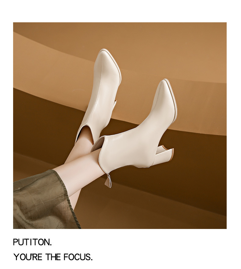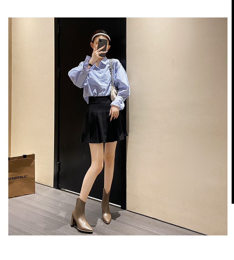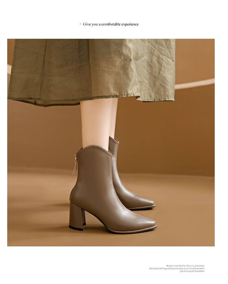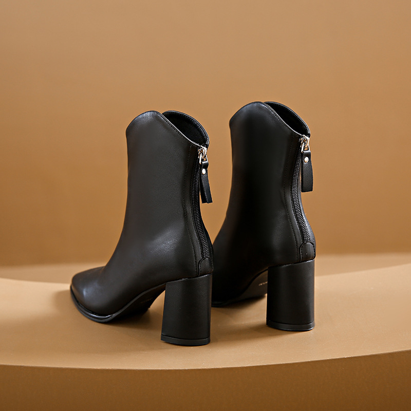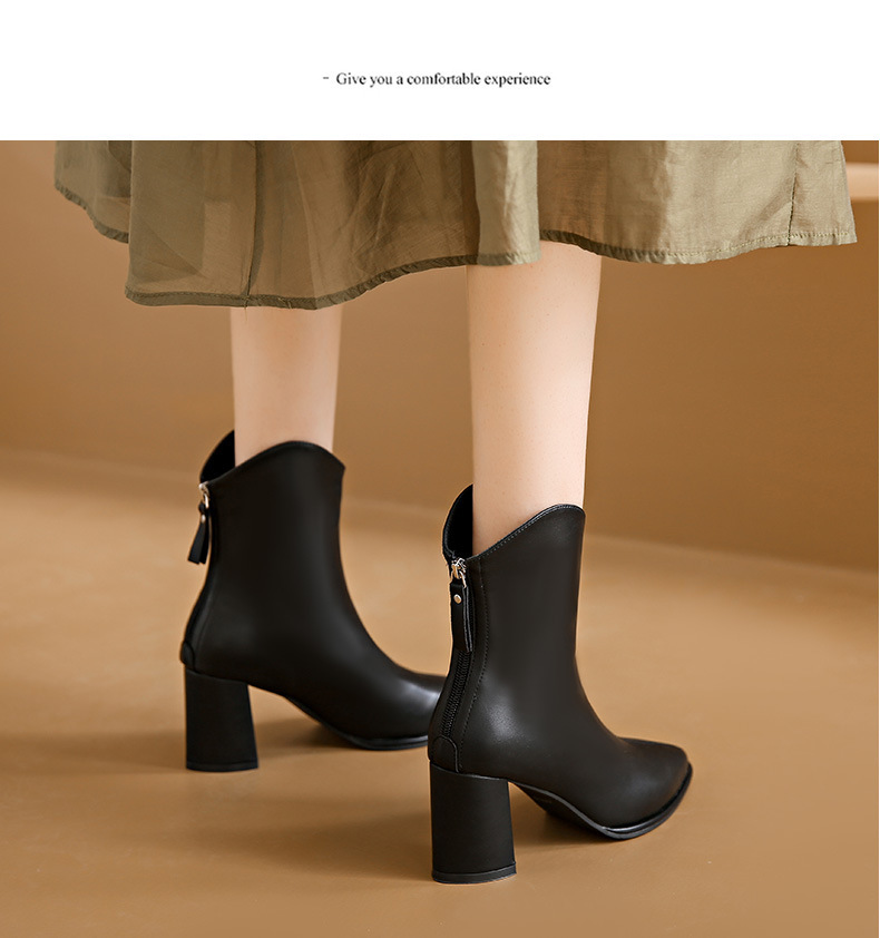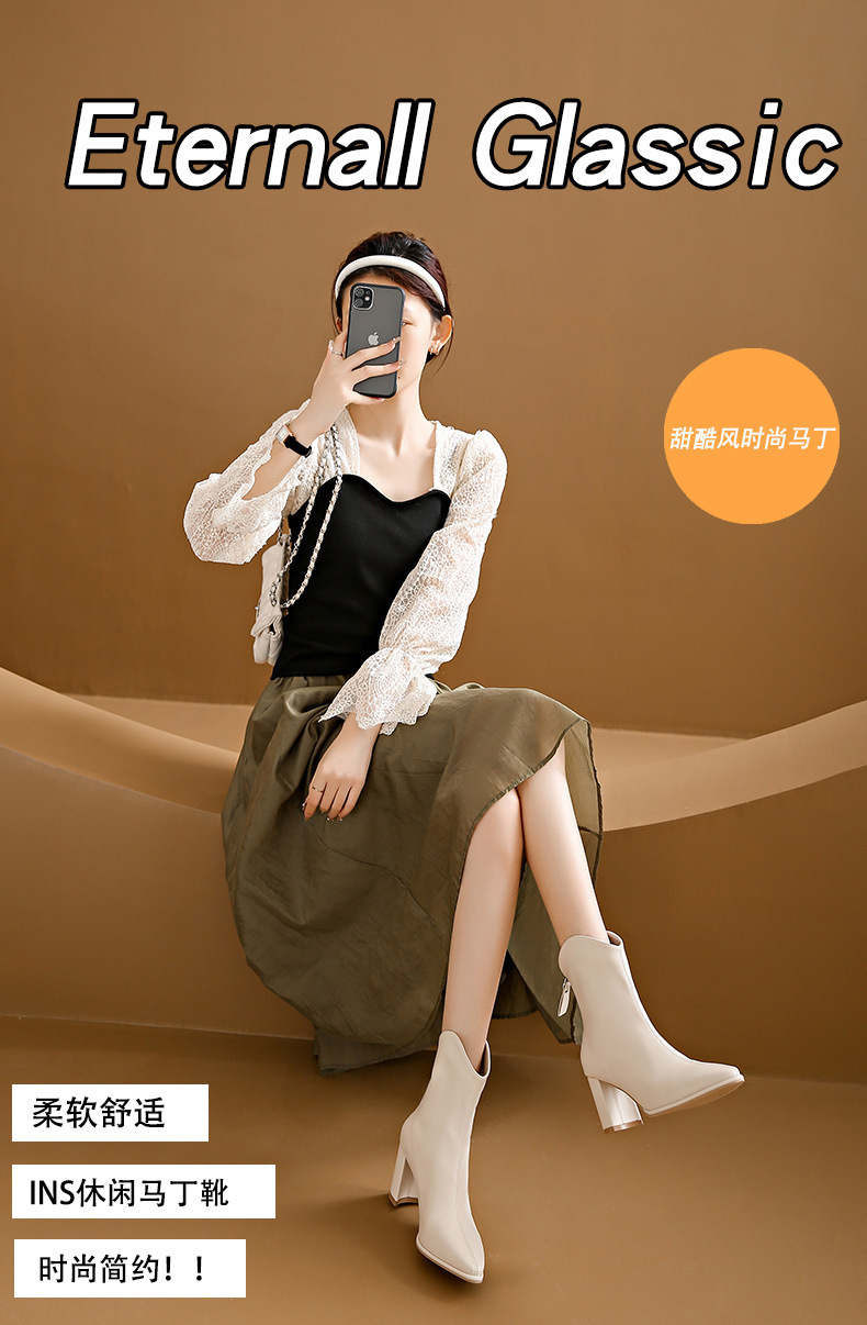 쇼트부츠 여자 얇은 부츠 가을과 겨울 한국식 쇼트배럴 올매치 두꺼운 힐하이힐 마틴 부츠스토어 가기
