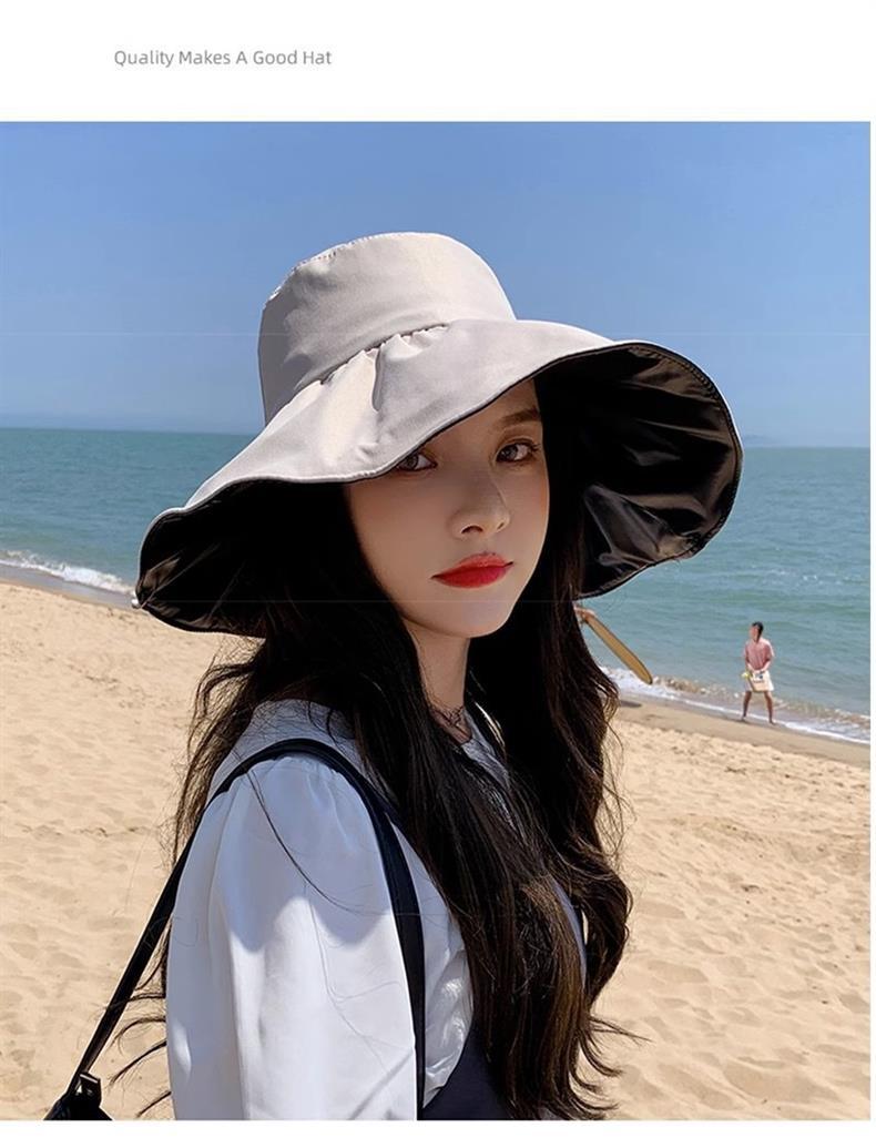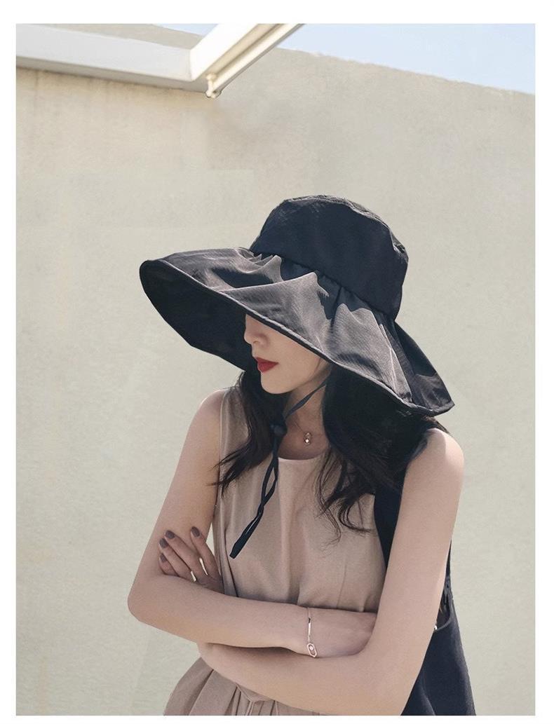 검은 고무 태양 모자 여름 새로운 야외 여행 접이식 모양의 태양 모자 큰 처마 어부 모자스토어 가기