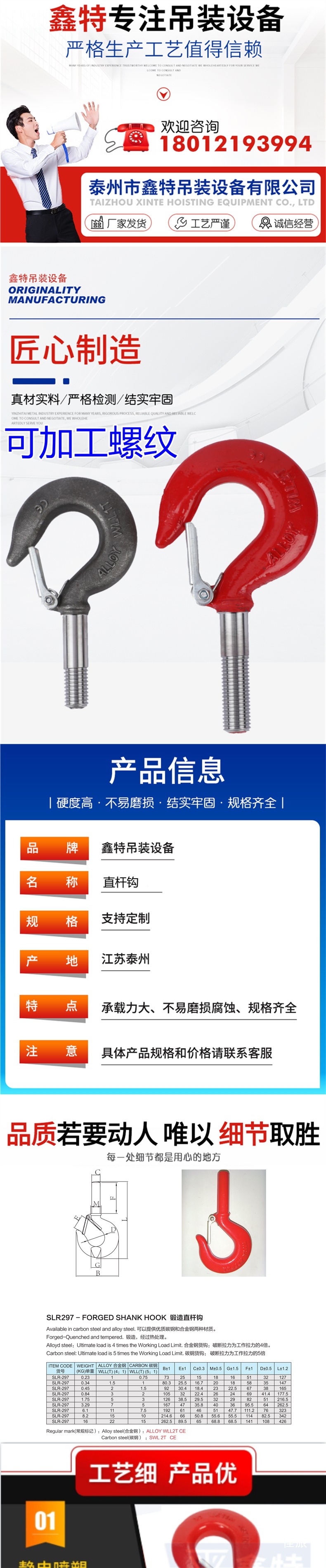 합금 강철 리프팅 큰 오프닝 스트레이트 핸들 후크 스크류 스트레이트 로드 후크 1t2 톤 보험 카드 스트레이트 핸들 후크스토어 가기