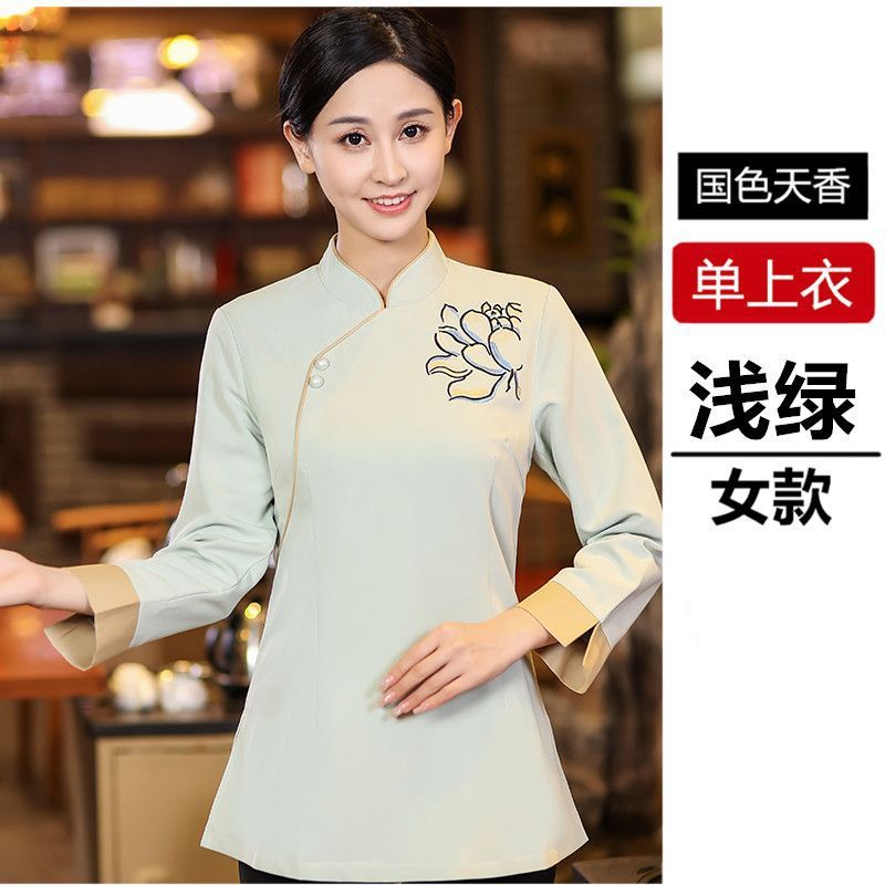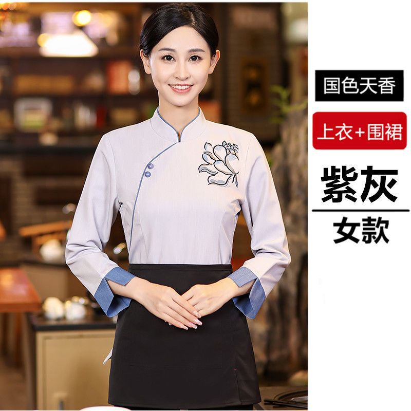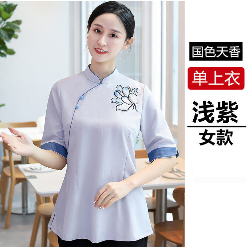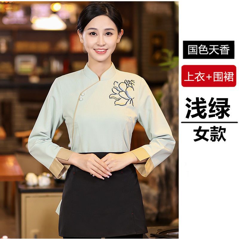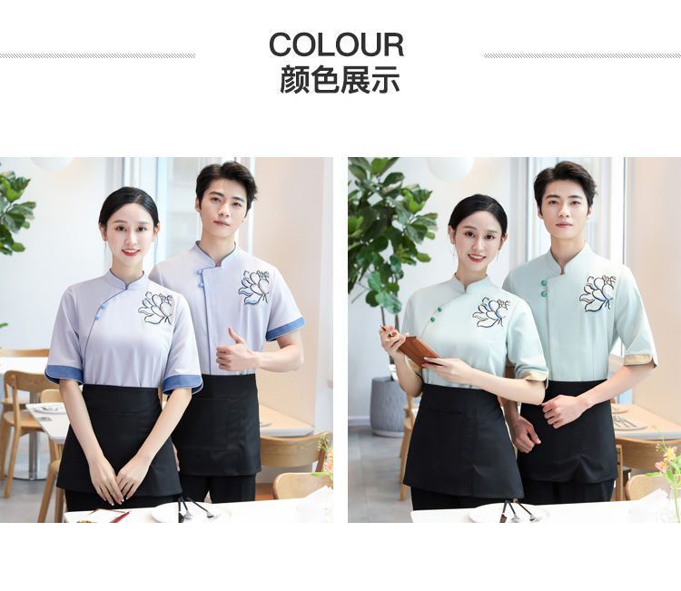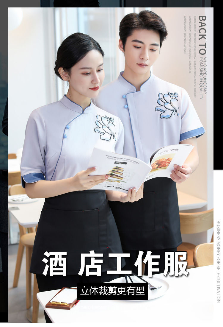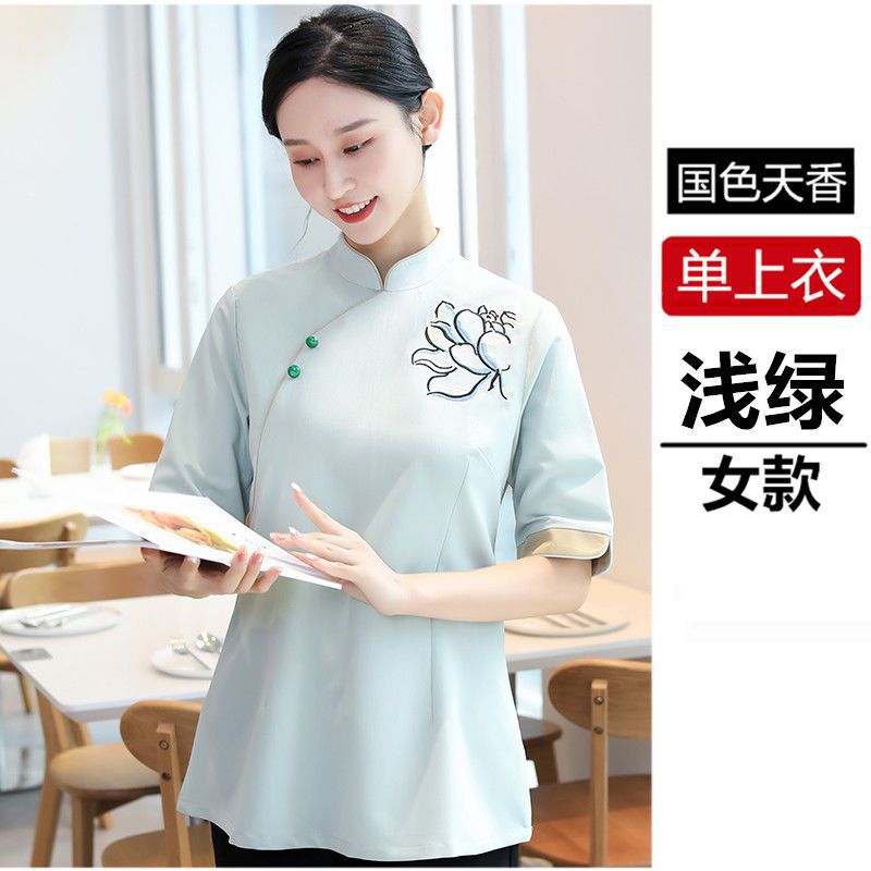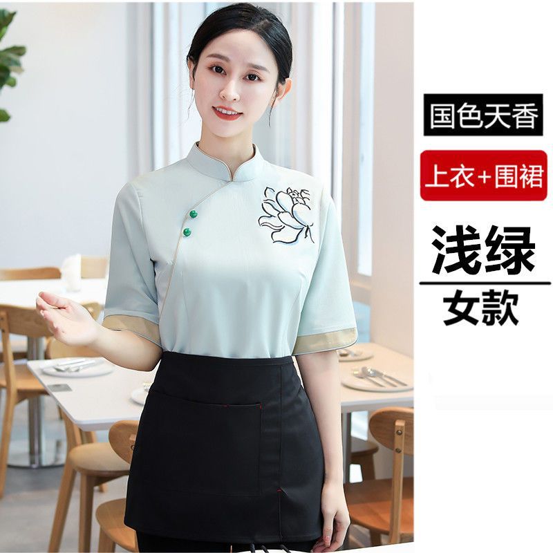 레스토랑 웨이터 작업 옷 긴 소매 여성 여름 옷 중국 호텔 케이터링 핫 팟 레스토랑 호텔 티 하우스 짧은 소매 세트스토어 가기