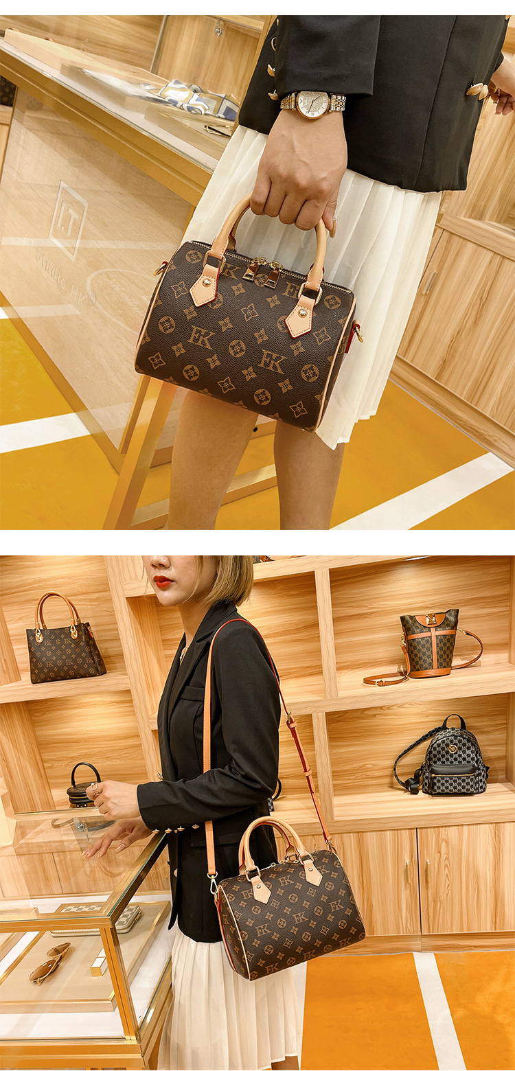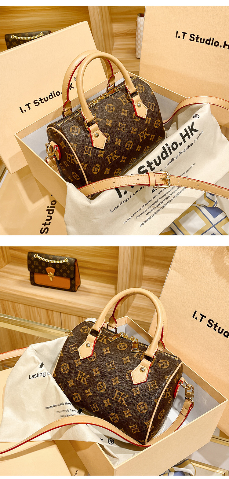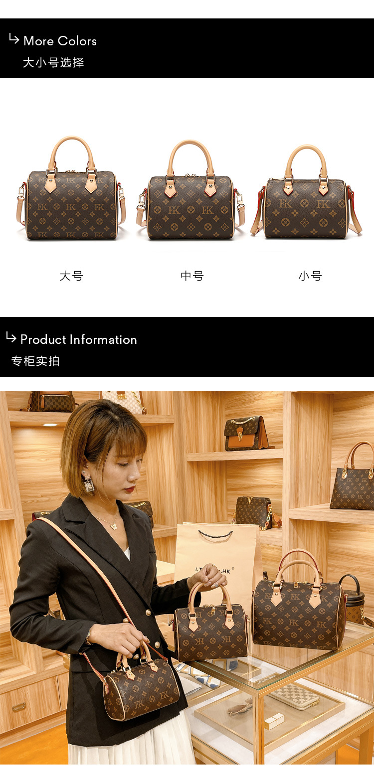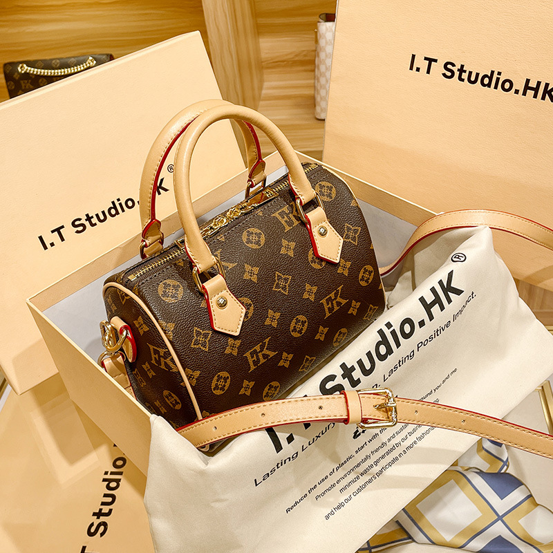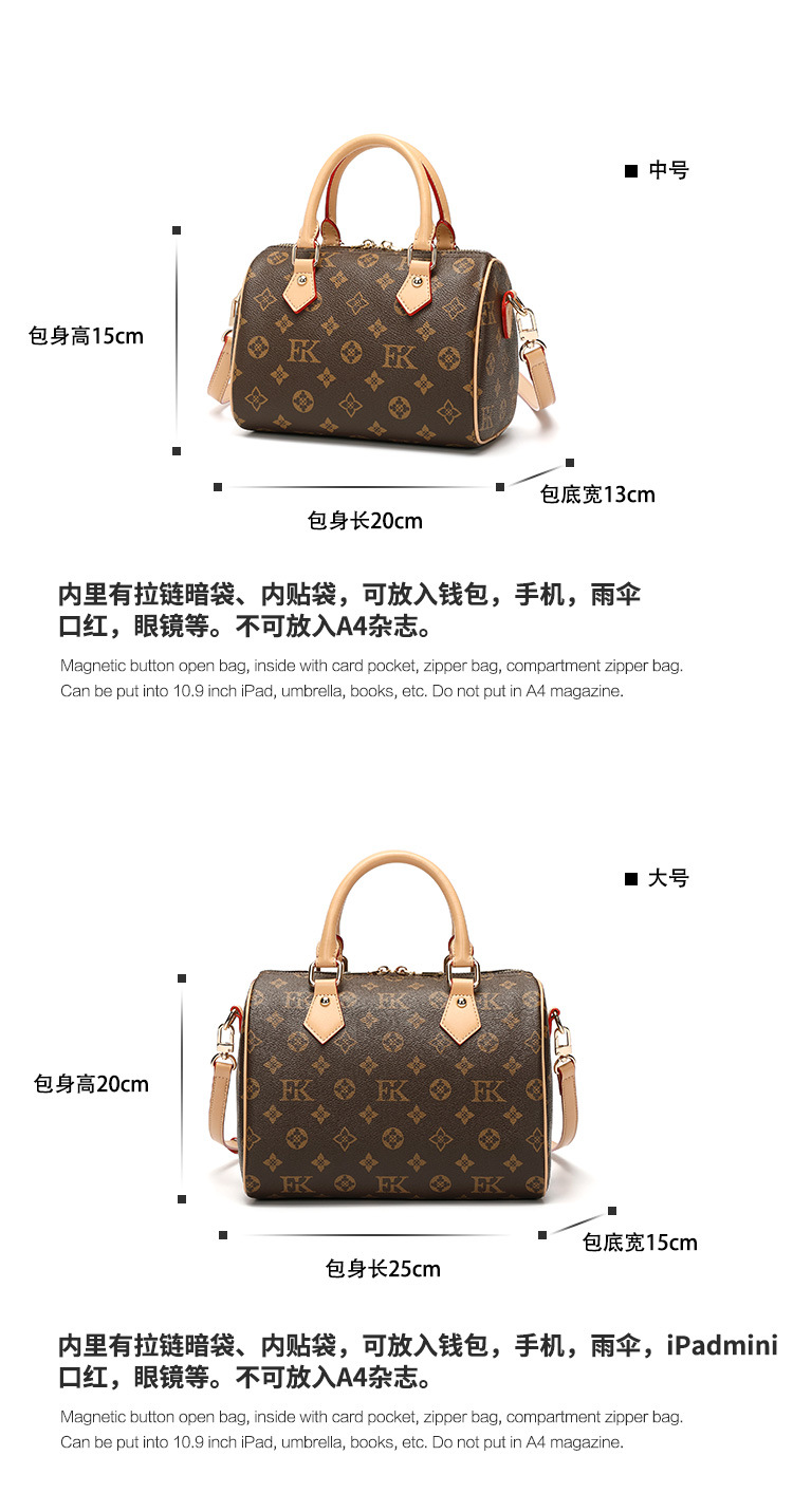 香港专柜真皮波士顿枕头包包女式2024新款秋冬时尚老花手提斜挎包
