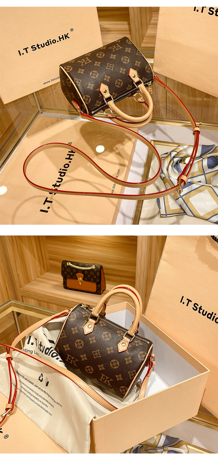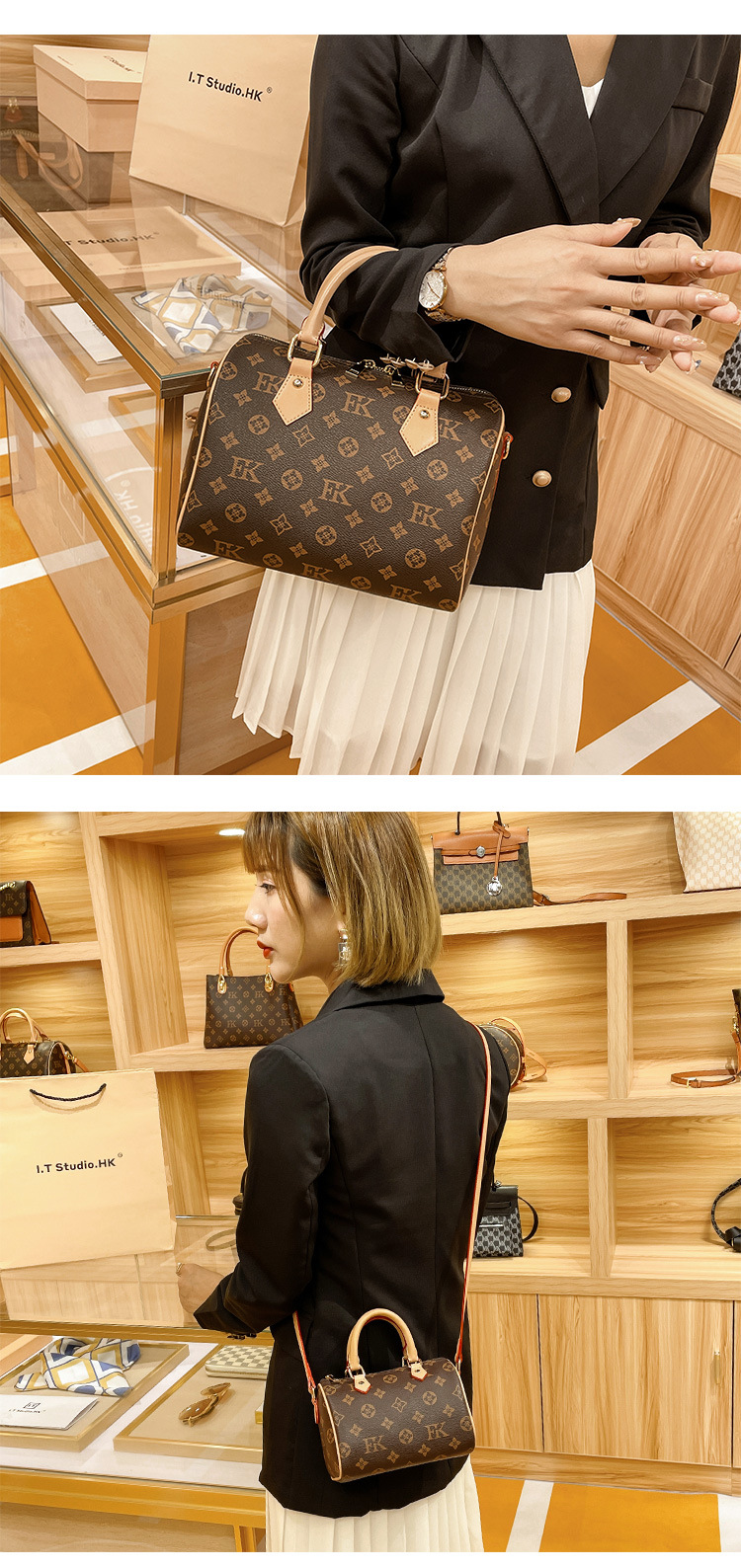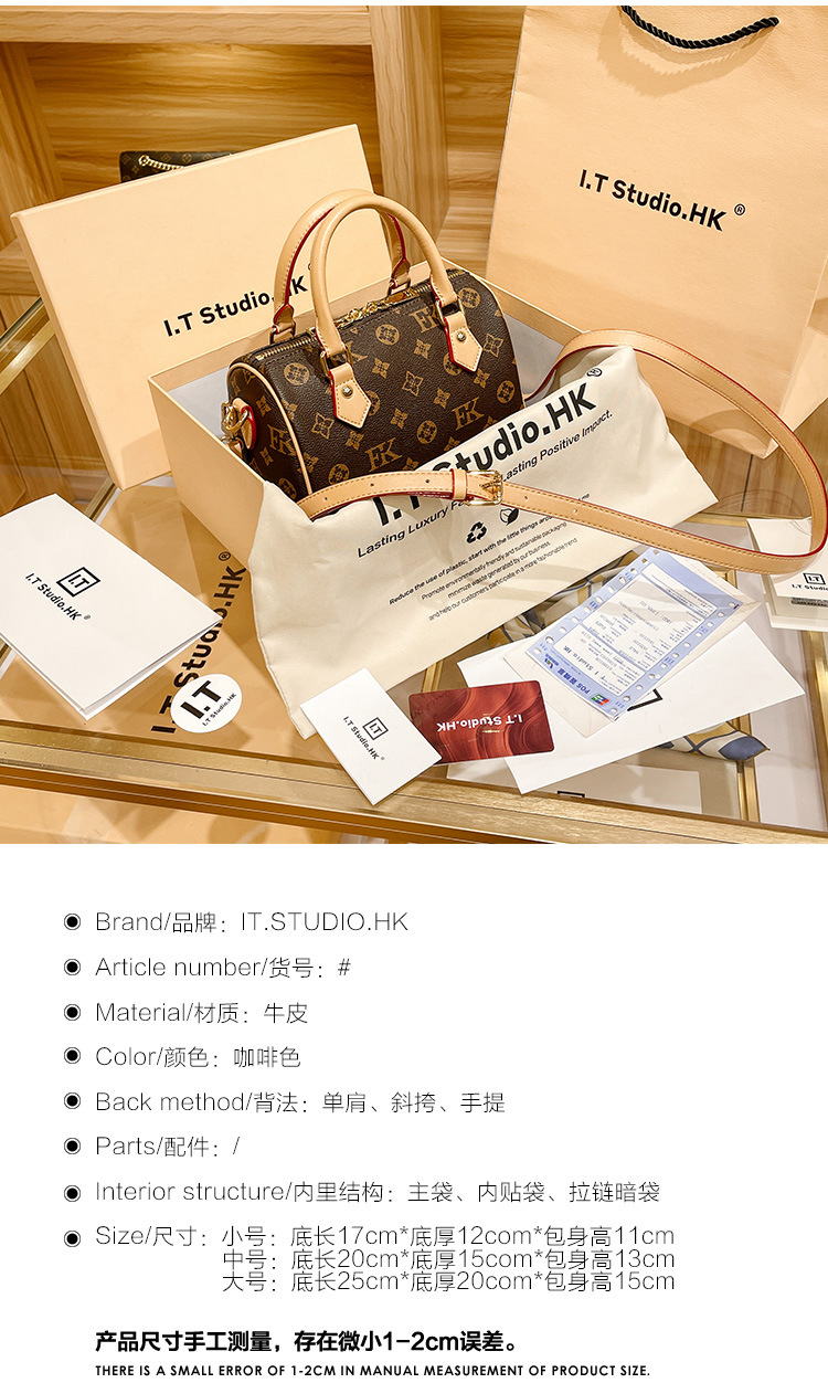 홍콩 카운터 정품 가죽 보스턴 베개 가방 여성 2025 새로운 가을, 겨울 패션 노안 휴대용 크로스 바디 백스토어 가기