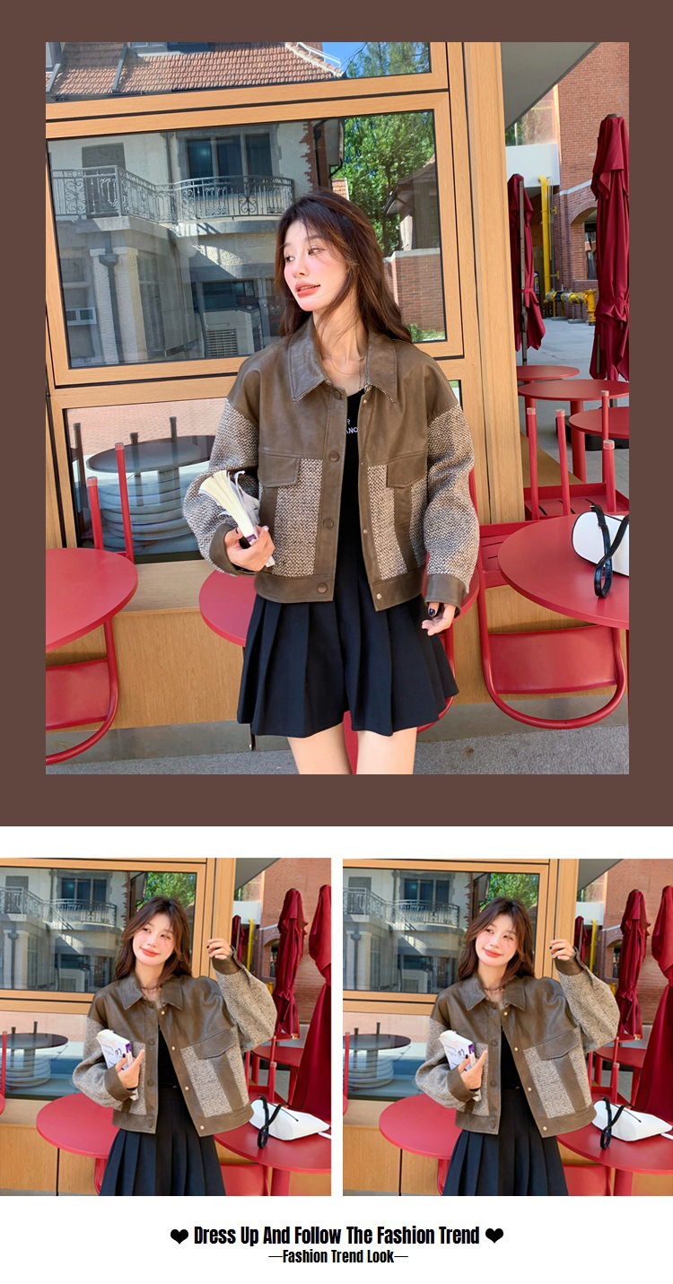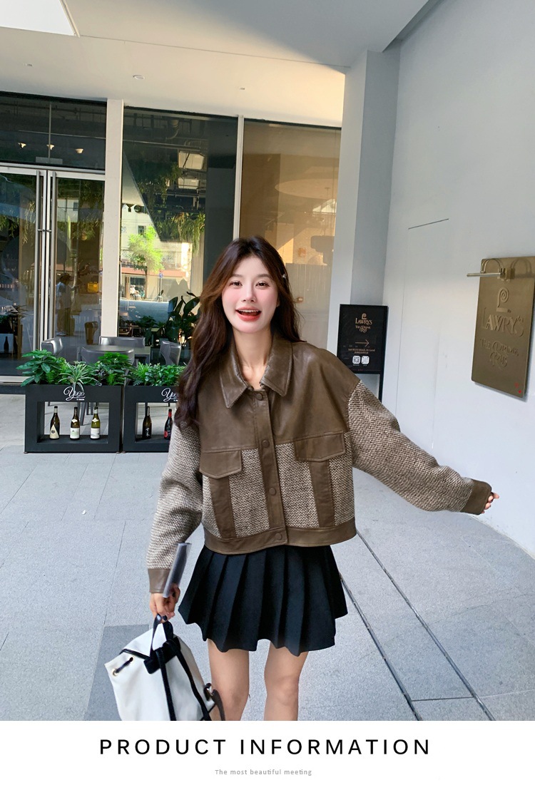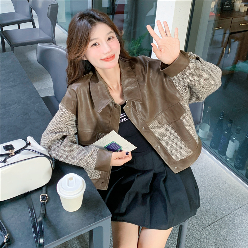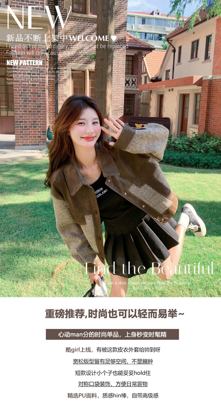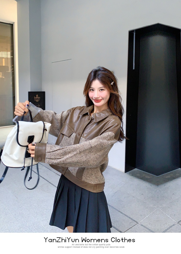 작은 Maillard PU 가죽 바느질 짧은 코트 여성의 봄과 가을 2025 새로운 디자인 감각 높은 감각 재킷 탑스토어 가기