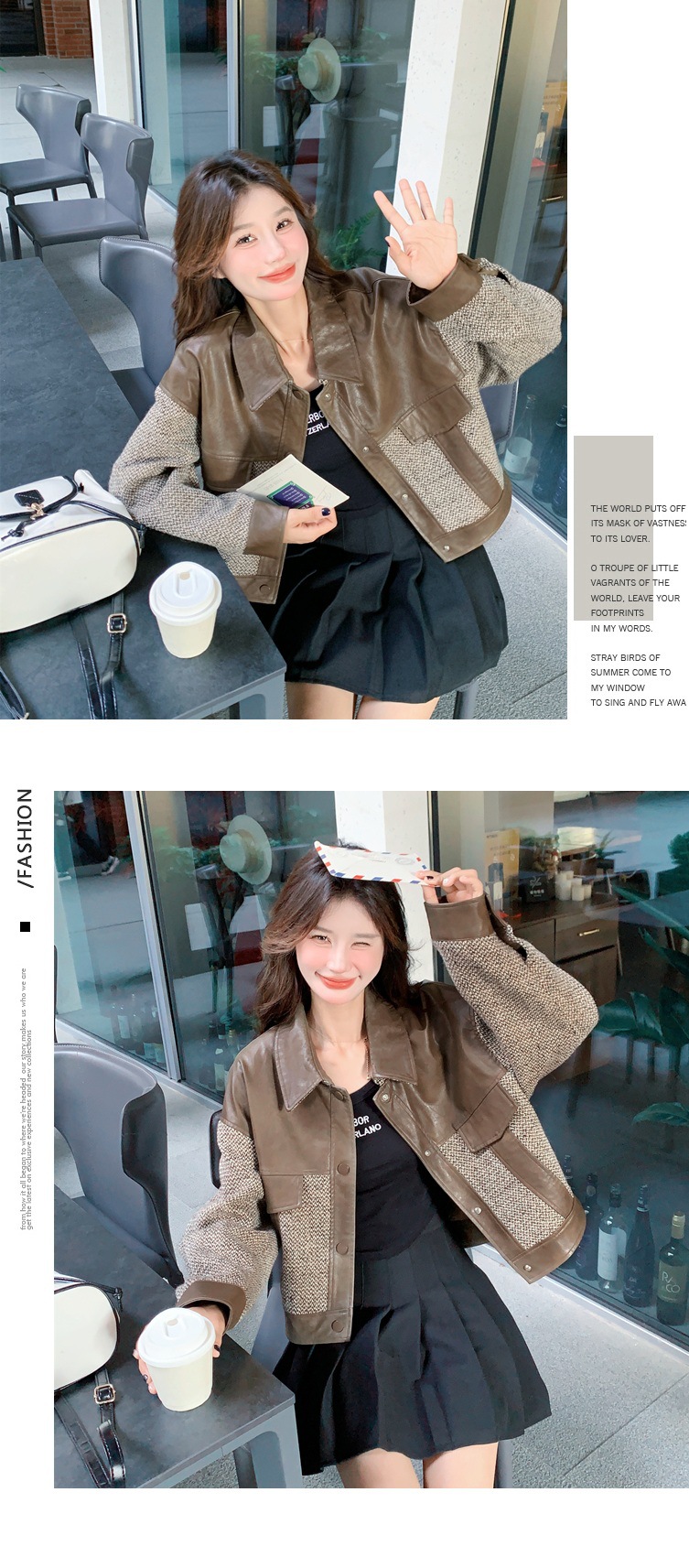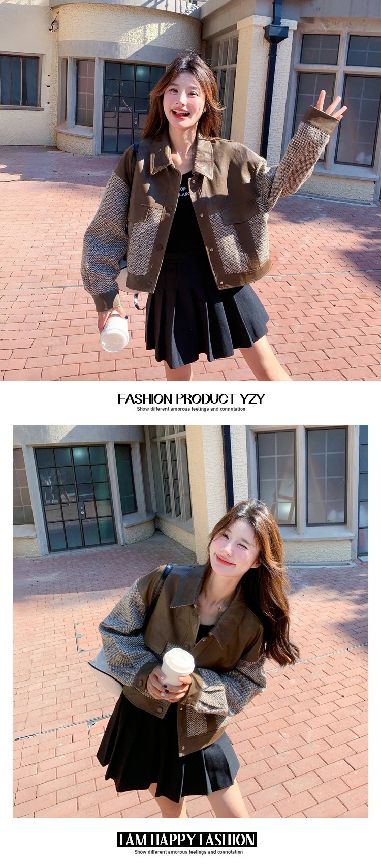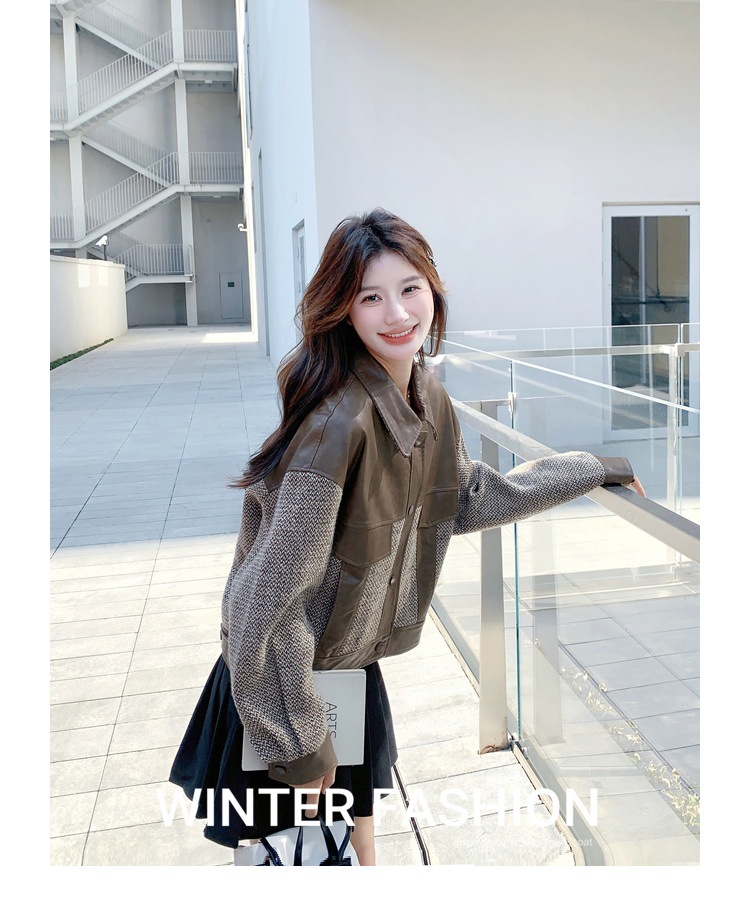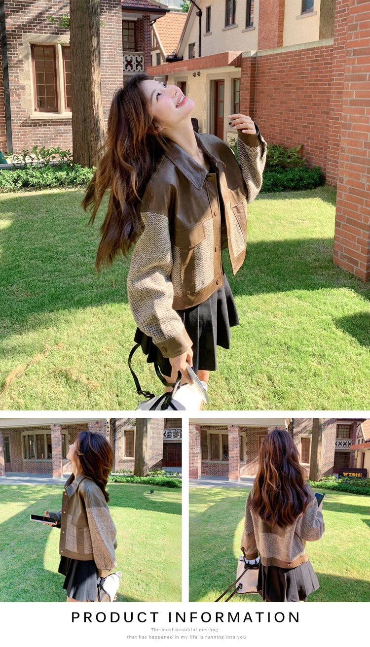 작은 Maillard PU 가죽 바느질 짧은 코트 여성의 봄과 가을 2025 새로운 디자인 감각 높은 감각 재킷 탑스토어 가기