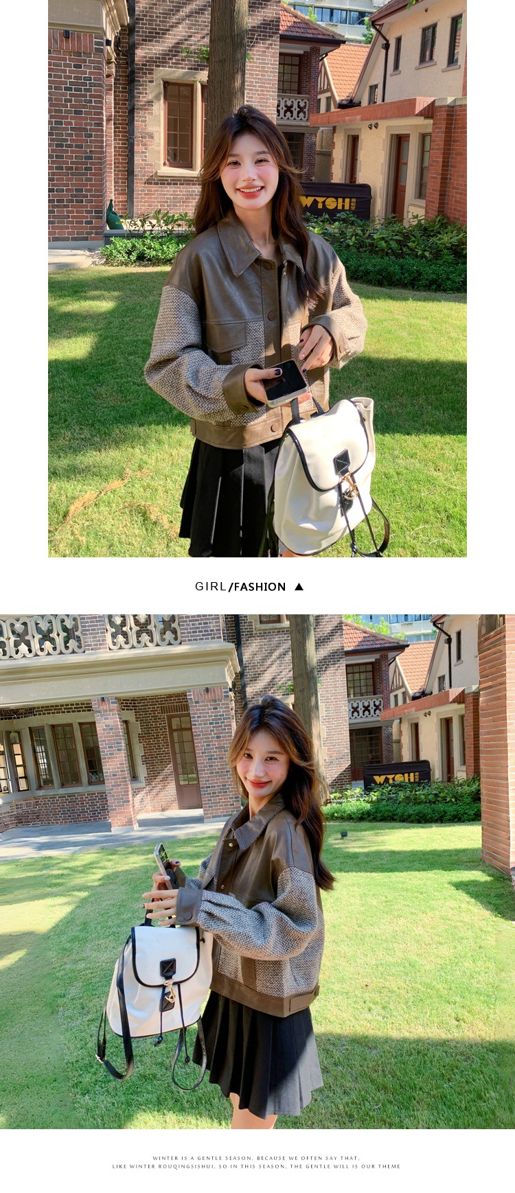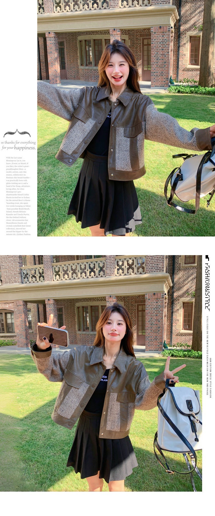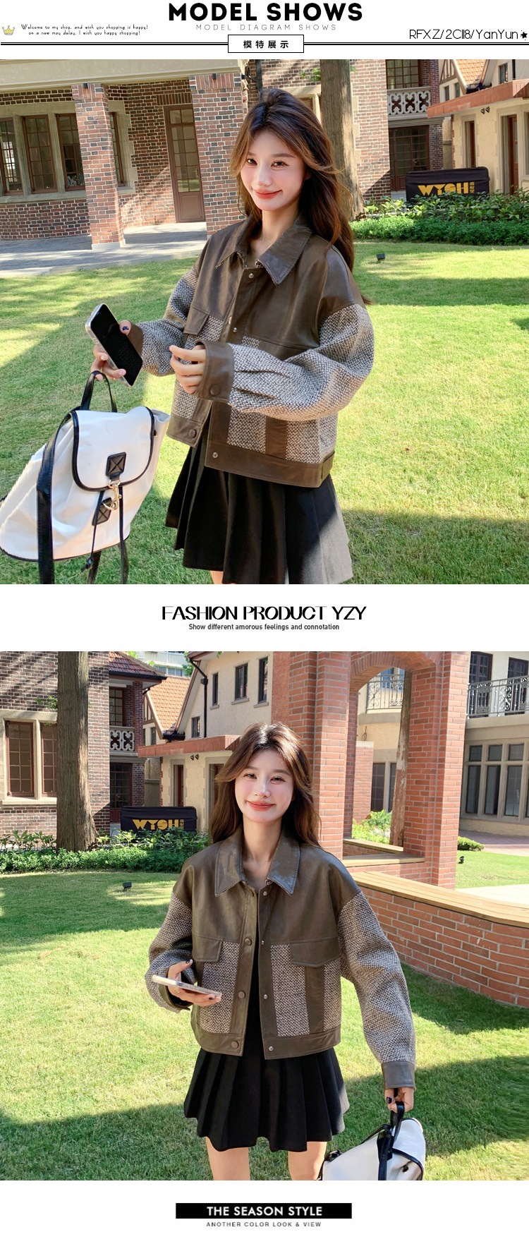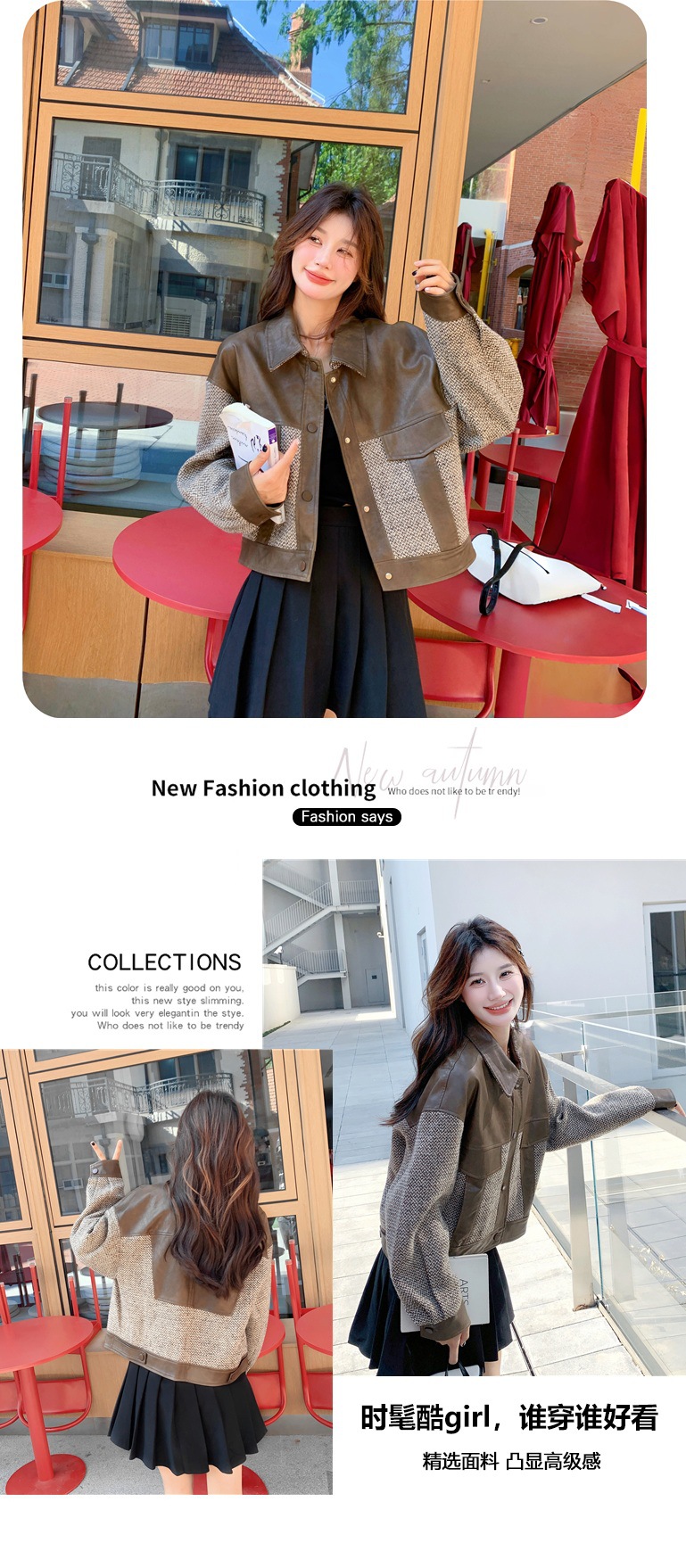 작은 Maillard PU 가죽 바느질 짧은 코트 여성의 봄과 가을 2025 새로운 디자인 감각 높은 감각 재킷 탑스토어 가기