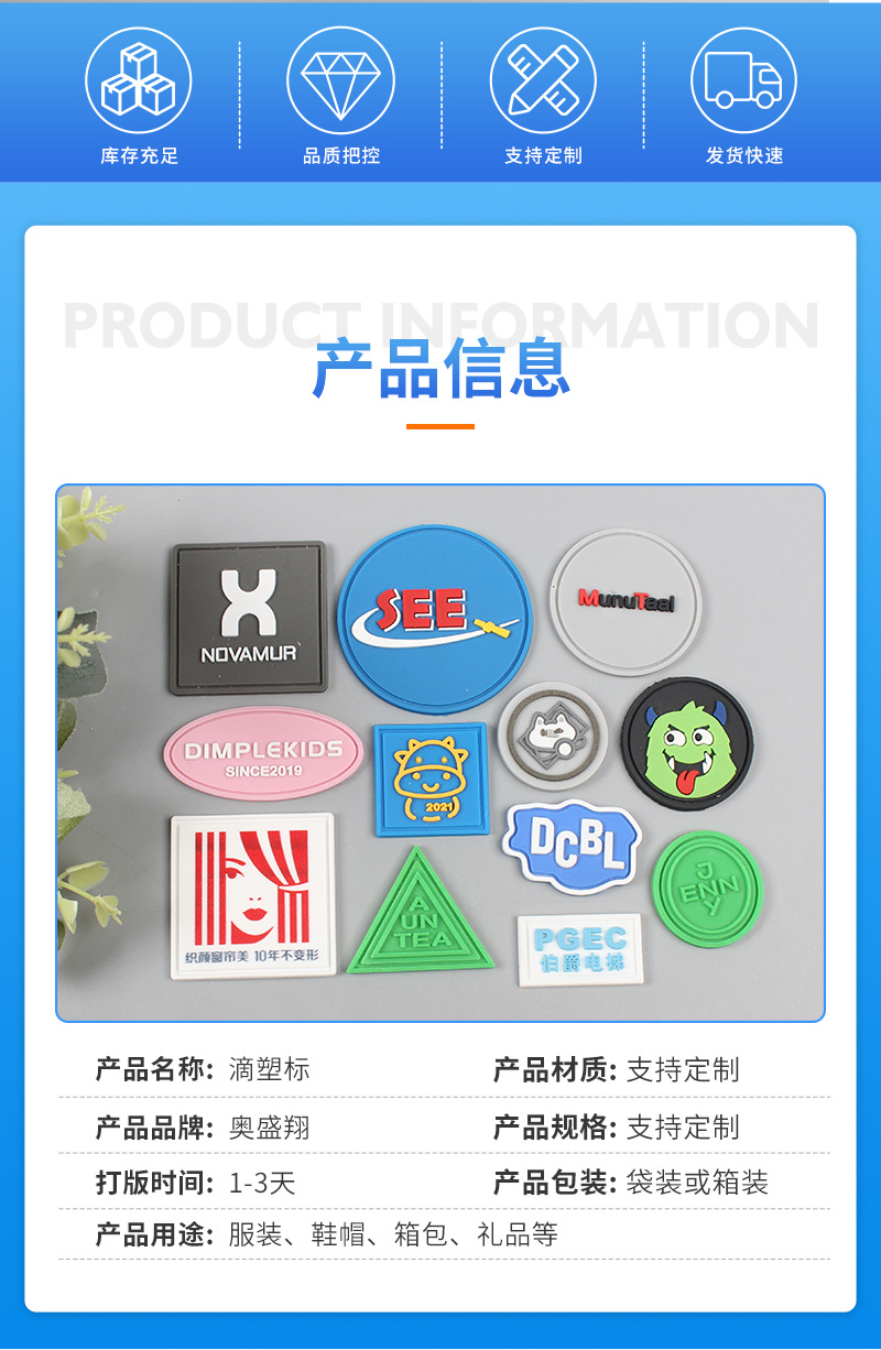 떨어지는 플라스틱 표준 조수 브랜드 홈 섬유 가방 신발 및 모자 투명 환경 보호 실리콘 표준 3 차원 PVC 의류 부드러운 고무 스탬프