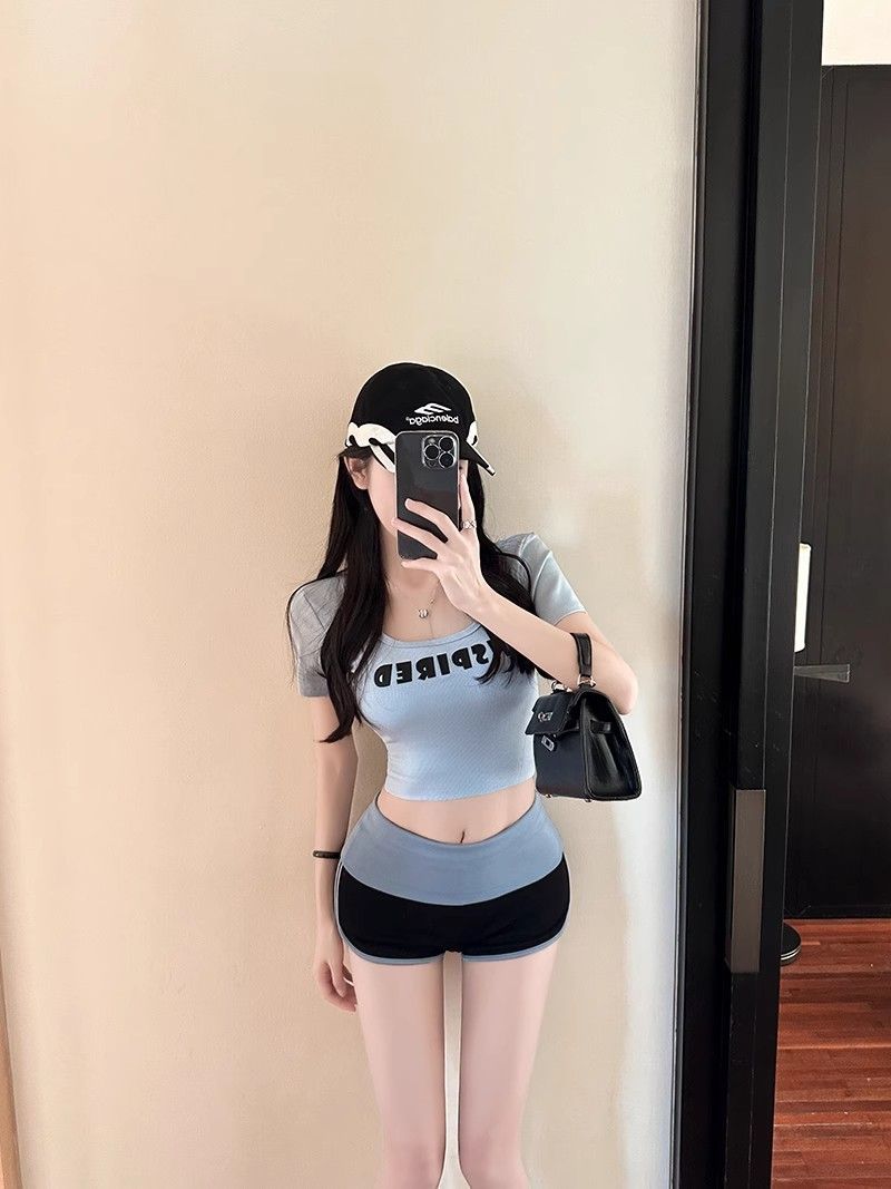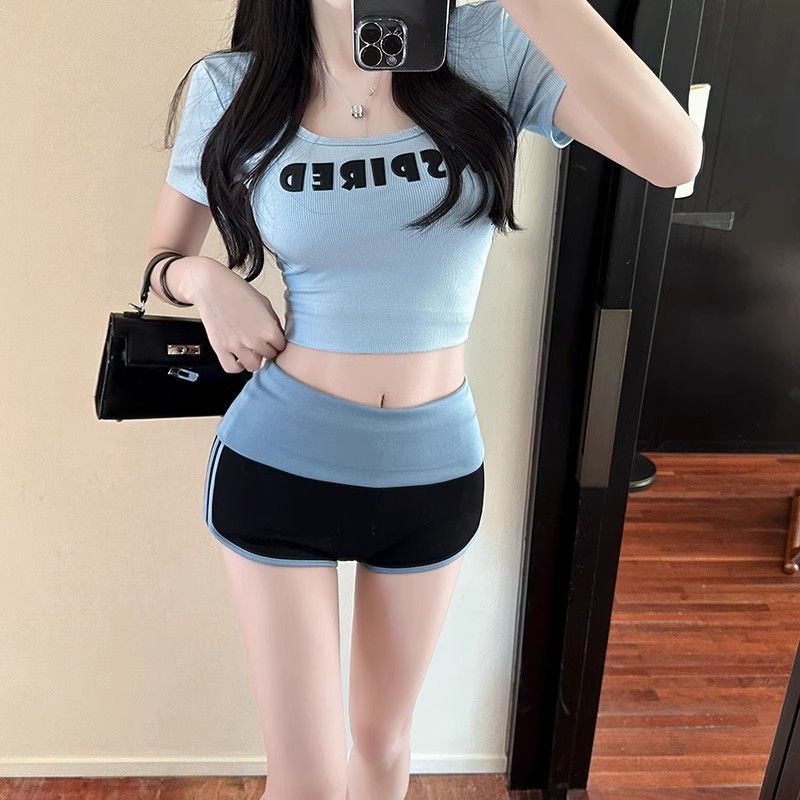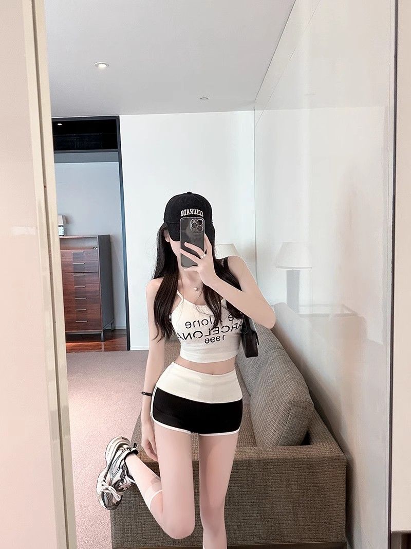 명암 컬러 스트레치 캐주얼 반바지 여성 여름 낮은 허리 순수한 욕망 스파이스 걸스 타이트베이스 스포츠 핫 팬츠 힙합 슈퍼 반바지스토어 가기