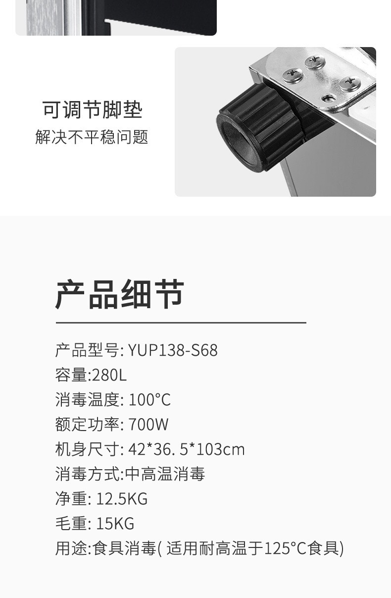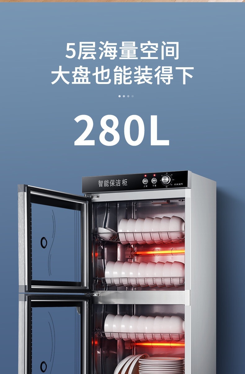 • 280L 확대 및 두꺼운 스테인레스 스틸 + 전면 회전 상하 제어