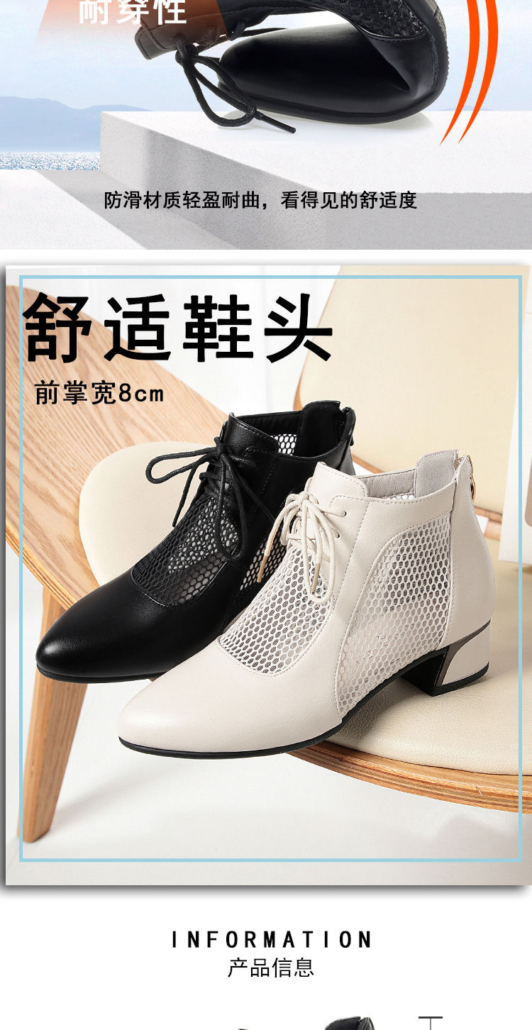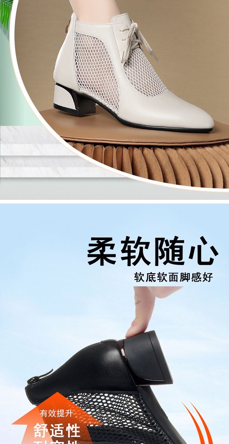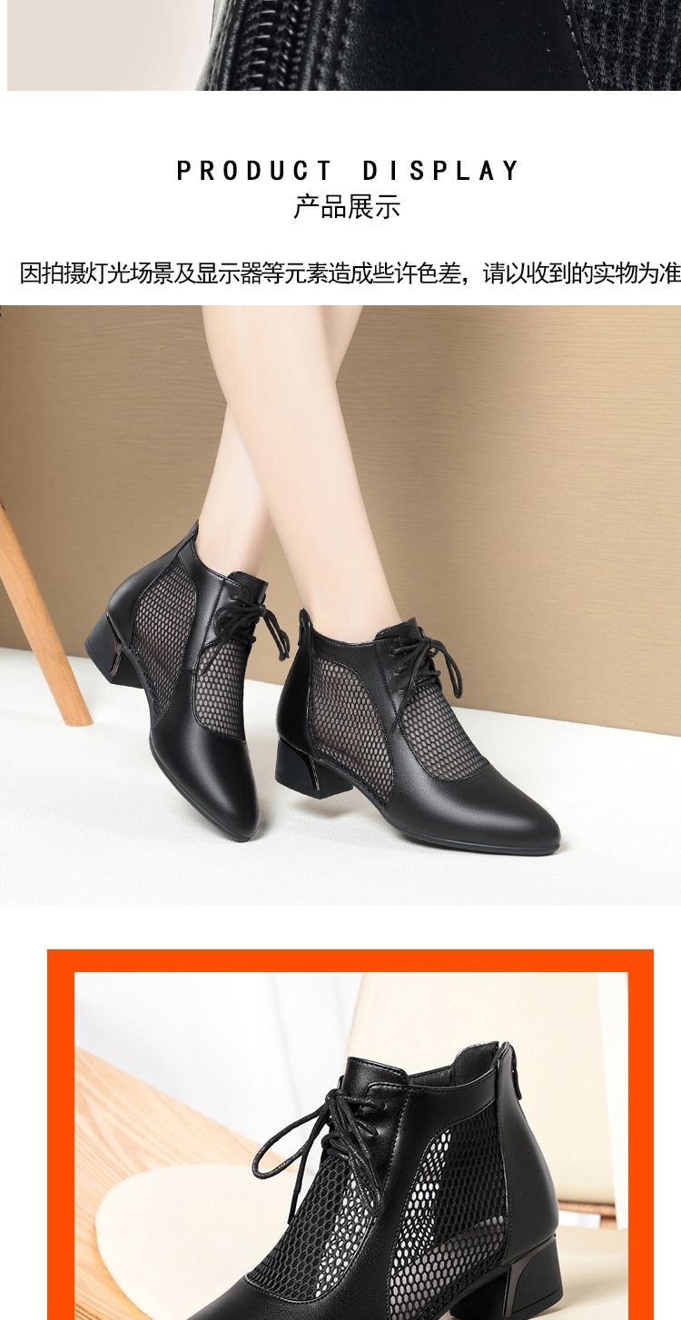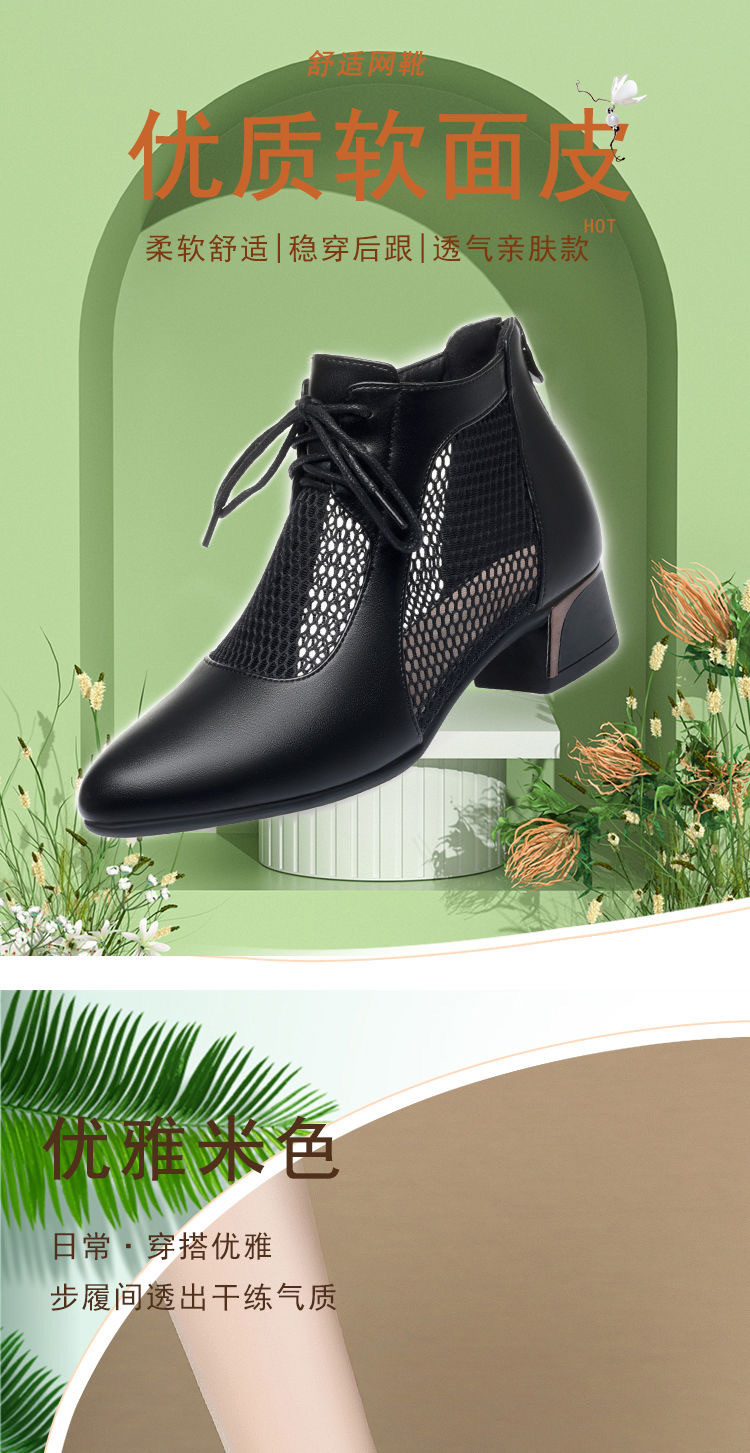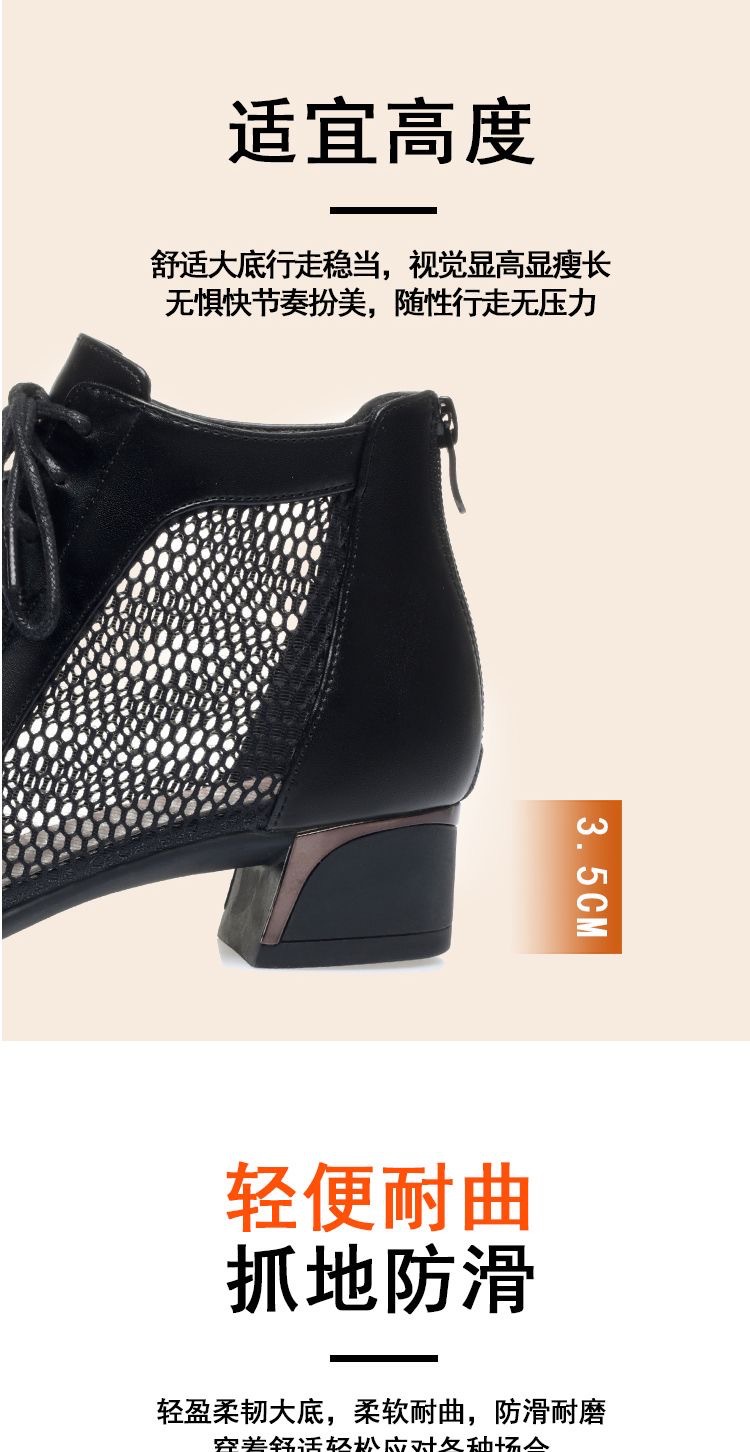 부드러운 가죽 포인팅 할로우 여성 신발 올매치 로우 힐 메쉬 커버 샌들 유행 틱 힐 메시 레이스 업 로마 샌들