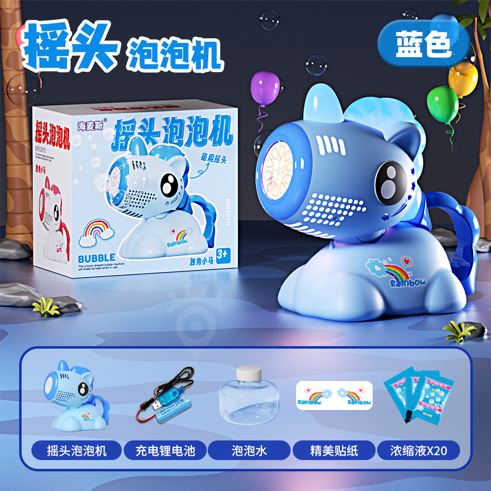 • [선물박스] 유니콘 버블머신 블루 (리튬배터리 + 버블수 + 스티커 + 액체 10개)
