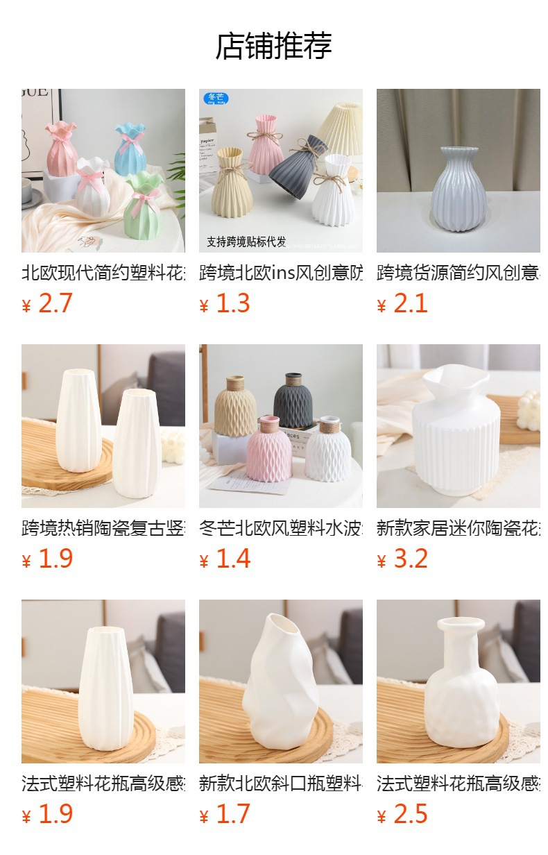 국경 간 공급 인기 판매 신선하고 간단한 스타일 낙하 방지 플라스틱 꽃병 홈 장식 꽃꽂이 장식품스토어 가기