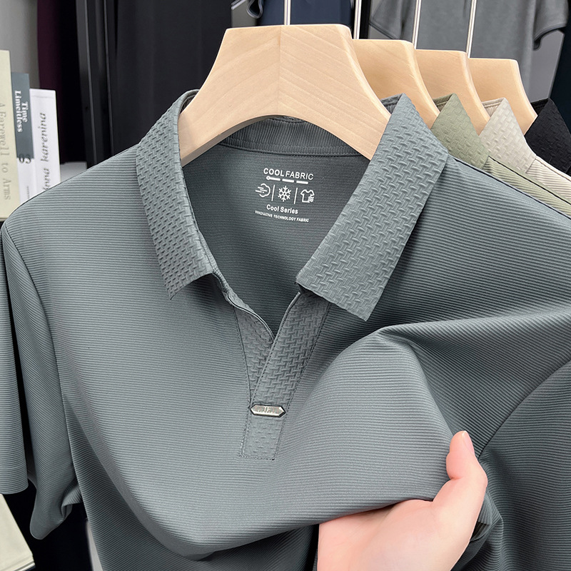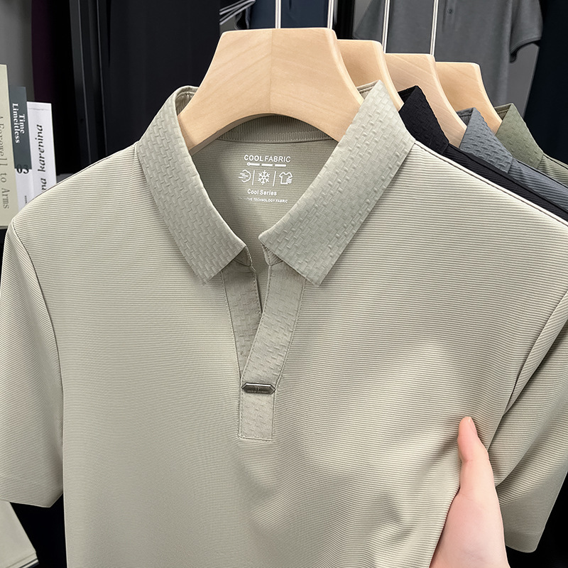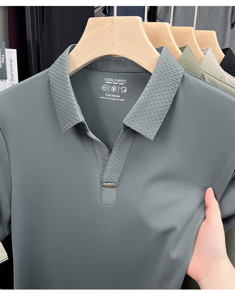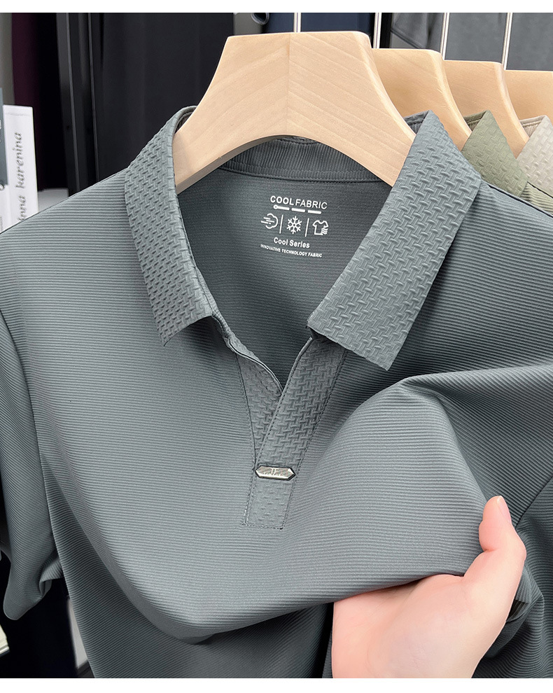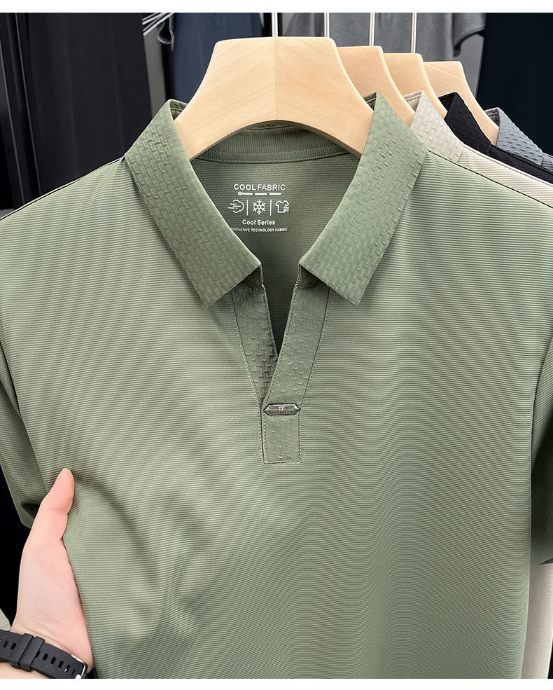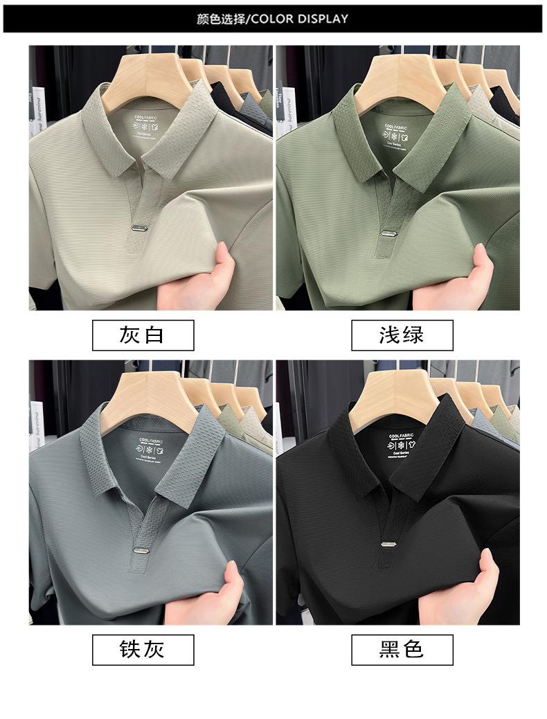 2025 여름 아이스 실크 원활한 자카드 가위 칼라 짧은 소매 POLO 셔츠 청소년 비즈니스 캐주얼 간단한 티셔츠 탑