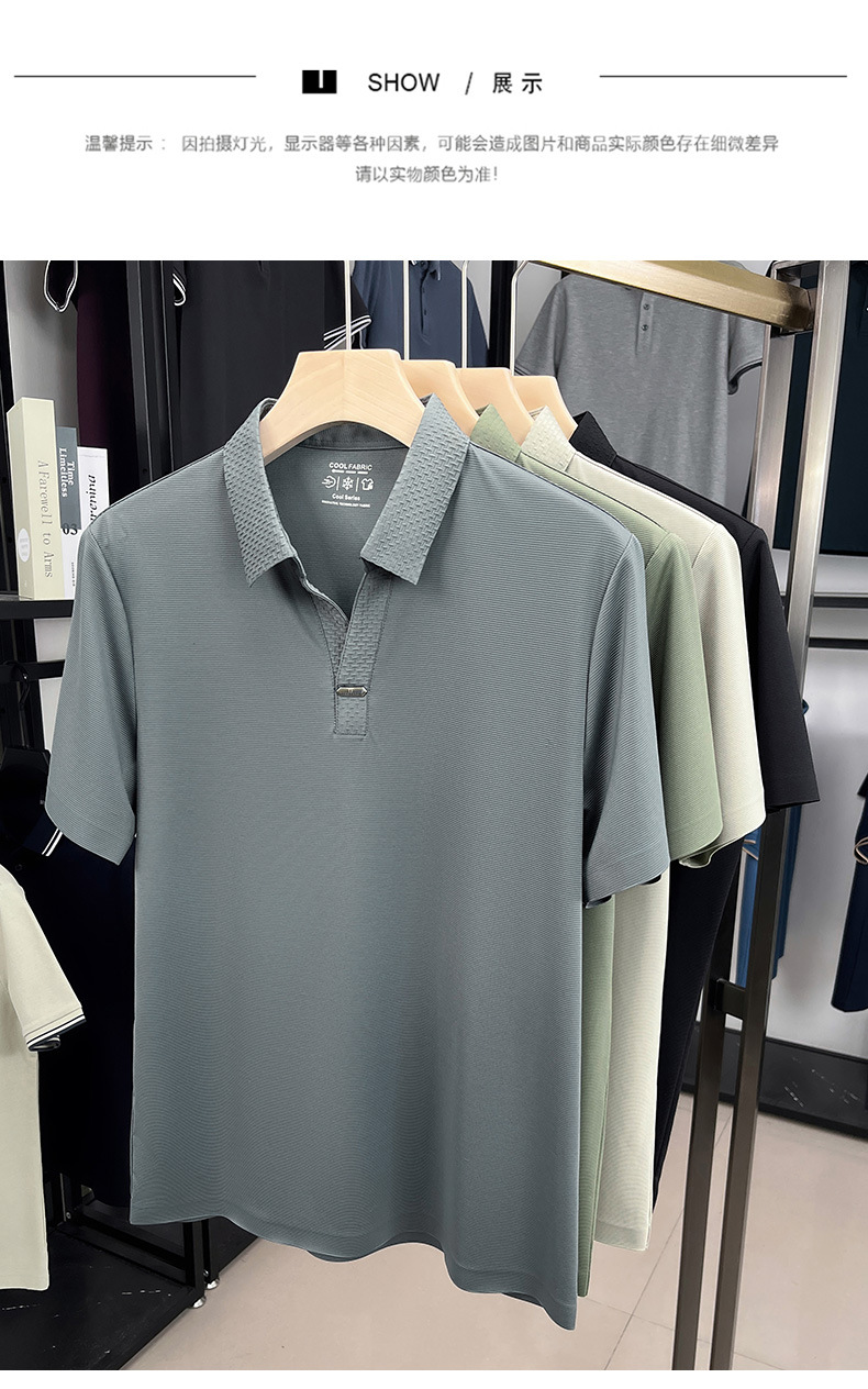 2025 여름 아이스 실크 원활한 자카드 가위 칼라 짧은 소매 POLO 셔츠 청소년 비즈니스 캐주얼 간단한 티셔츠 탑스토어 가기