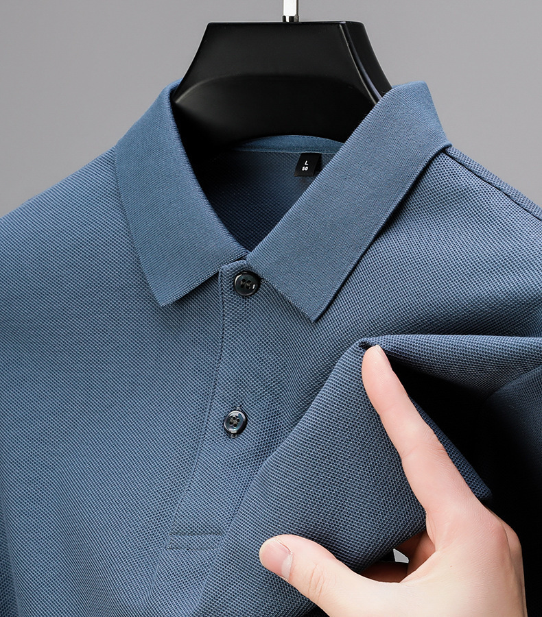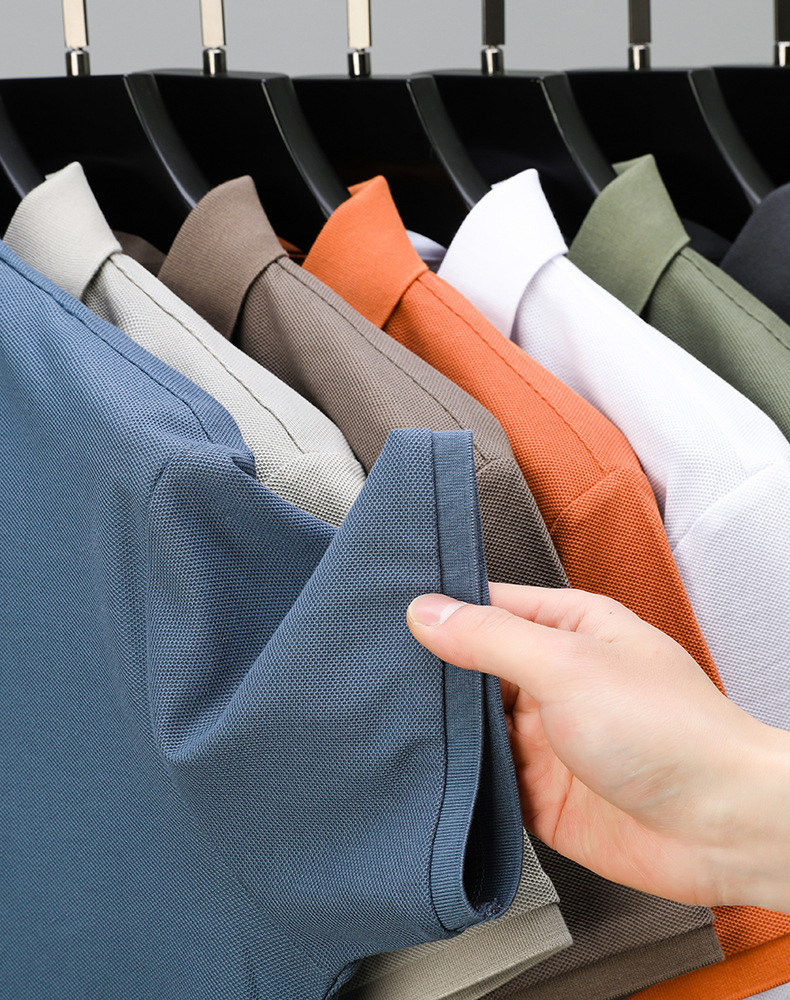 여름 새로운 폴로 셔츠 반팔 남성용 느슨한 디자인 센스 남성용 세련된 여름 솔리드 컬러 넷 옷깃 코튼 티셔츠