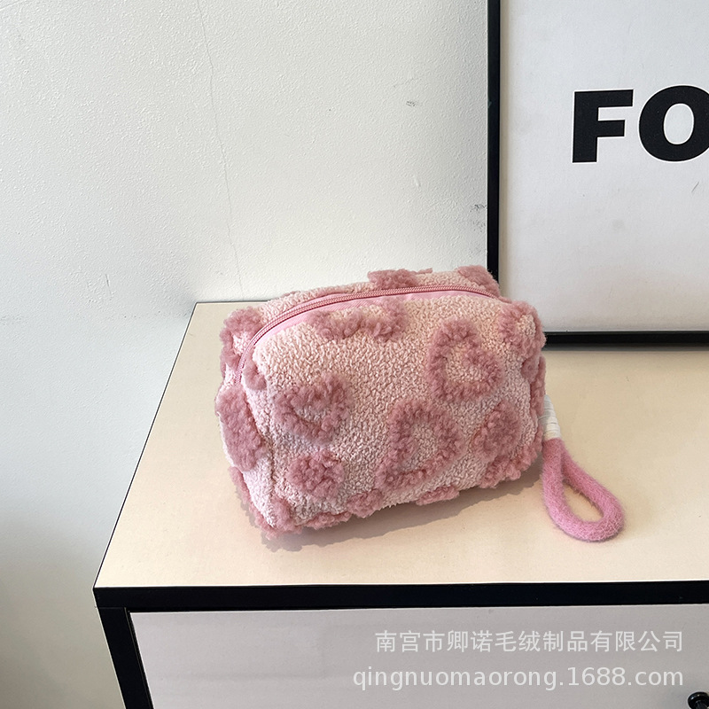 새로운 귀여운 소녀, 달콤한 대용량 휴대용 플러시 화장품 가방 여행 세탁 도매