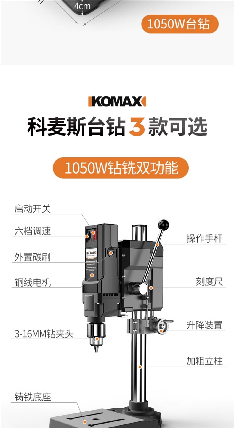 • [드릴링 및 밀링 겸용/6단 속도 조절] 드릴링 및 밀링 겸용 800W