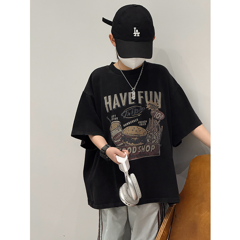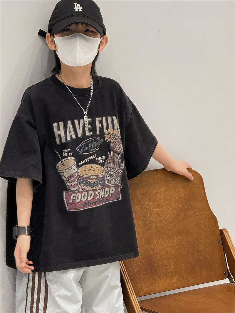 Baoduo 아동복 소년 반팔 티셔츠 2025 봄 여름 신작 아동 여름 반팔 캐주얼 탑 100-170 유행스토어 가기