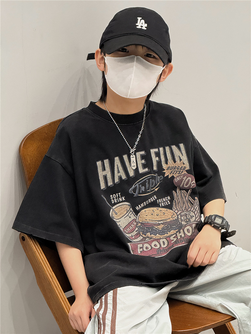 Baoduo 아동복 소년 반팔 티셔츠 2025 봄 여름 신작 아동 여름 반팔 캐주얼 탑 100-170 유행