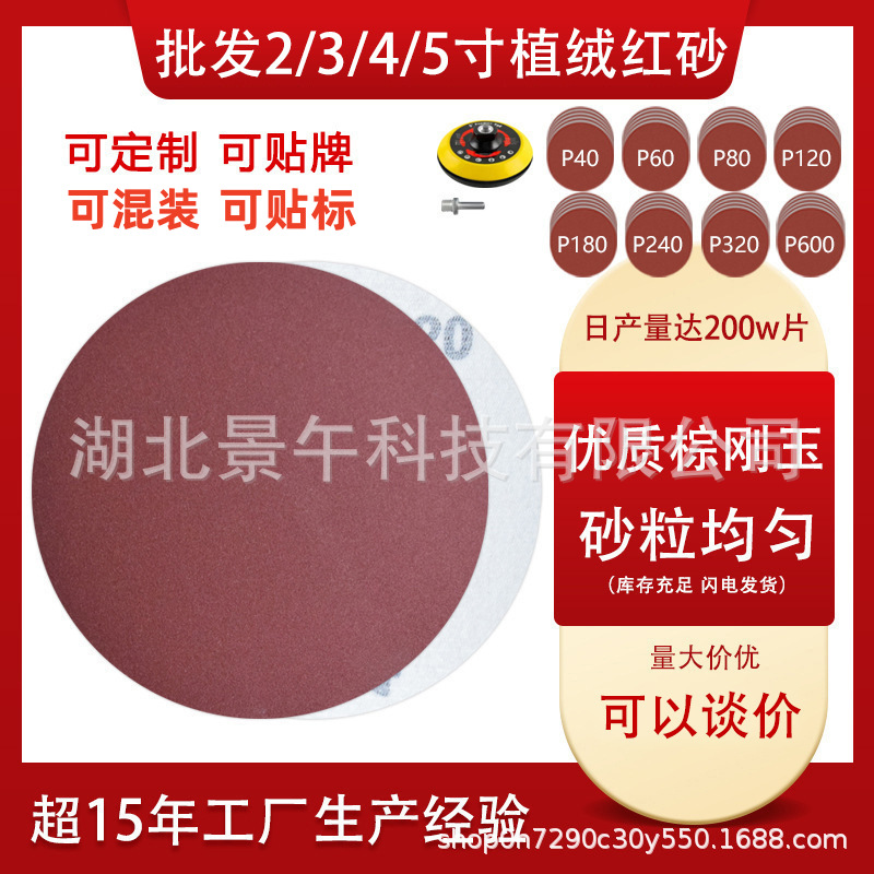 플로킹 사포 도매 4인치 5호 레드 샌드 자착식 백킹 연마 디스크 금속 녹 제거 원형 디스크스토어 가기