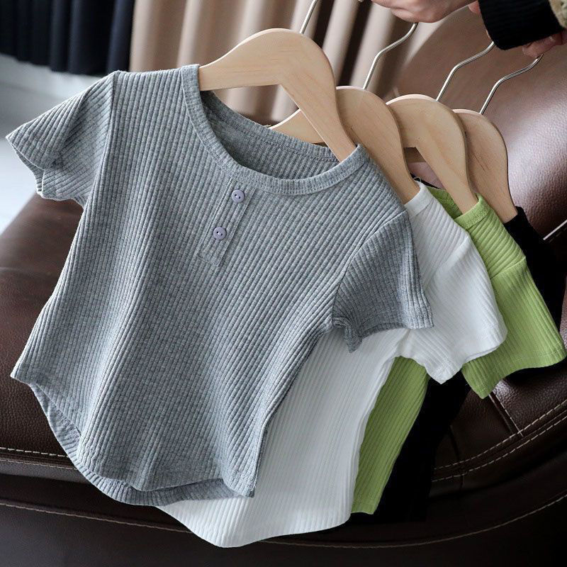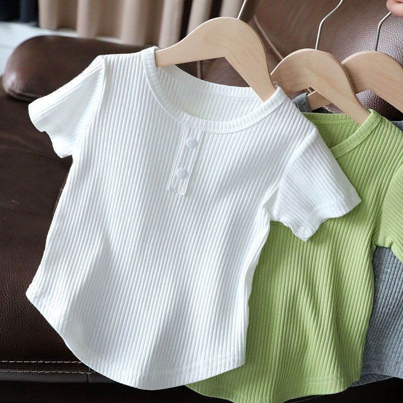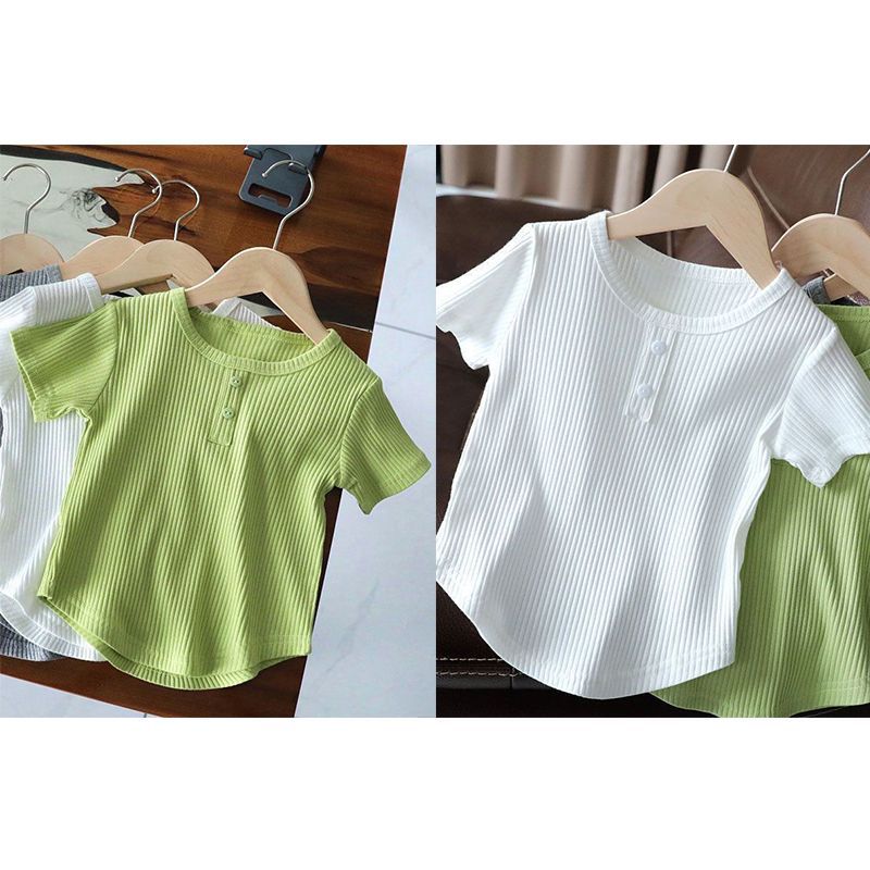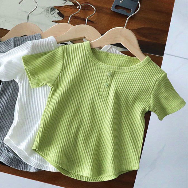 2024 년 새 아동복 아기 소녀 티셔츠 반팔 아동베이스 셔츠 어린이 여름 올 매치 탑 여름스토어 가기