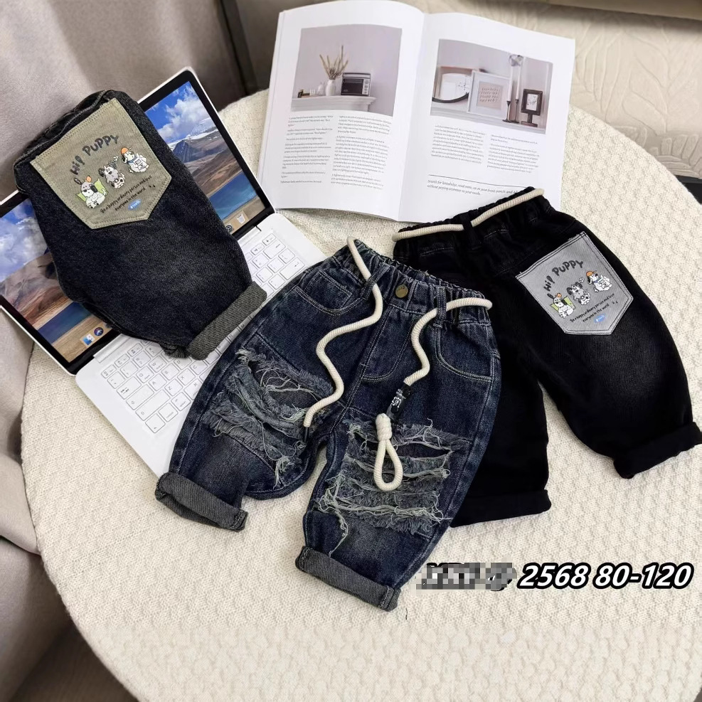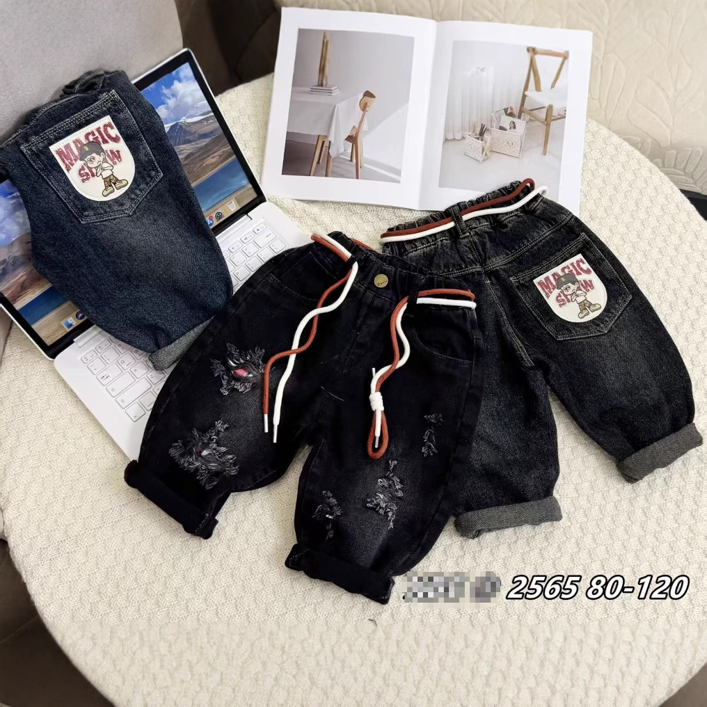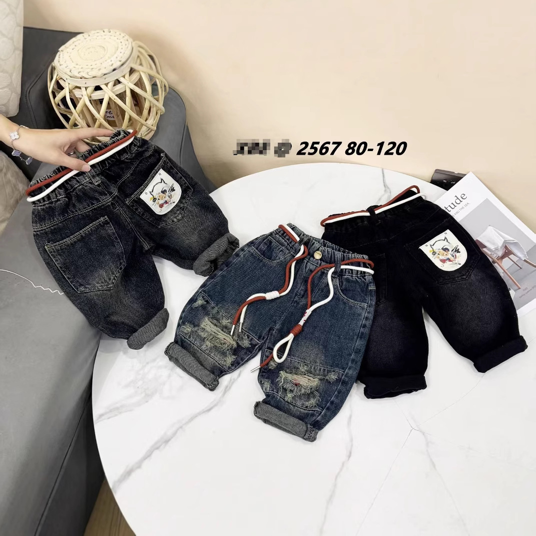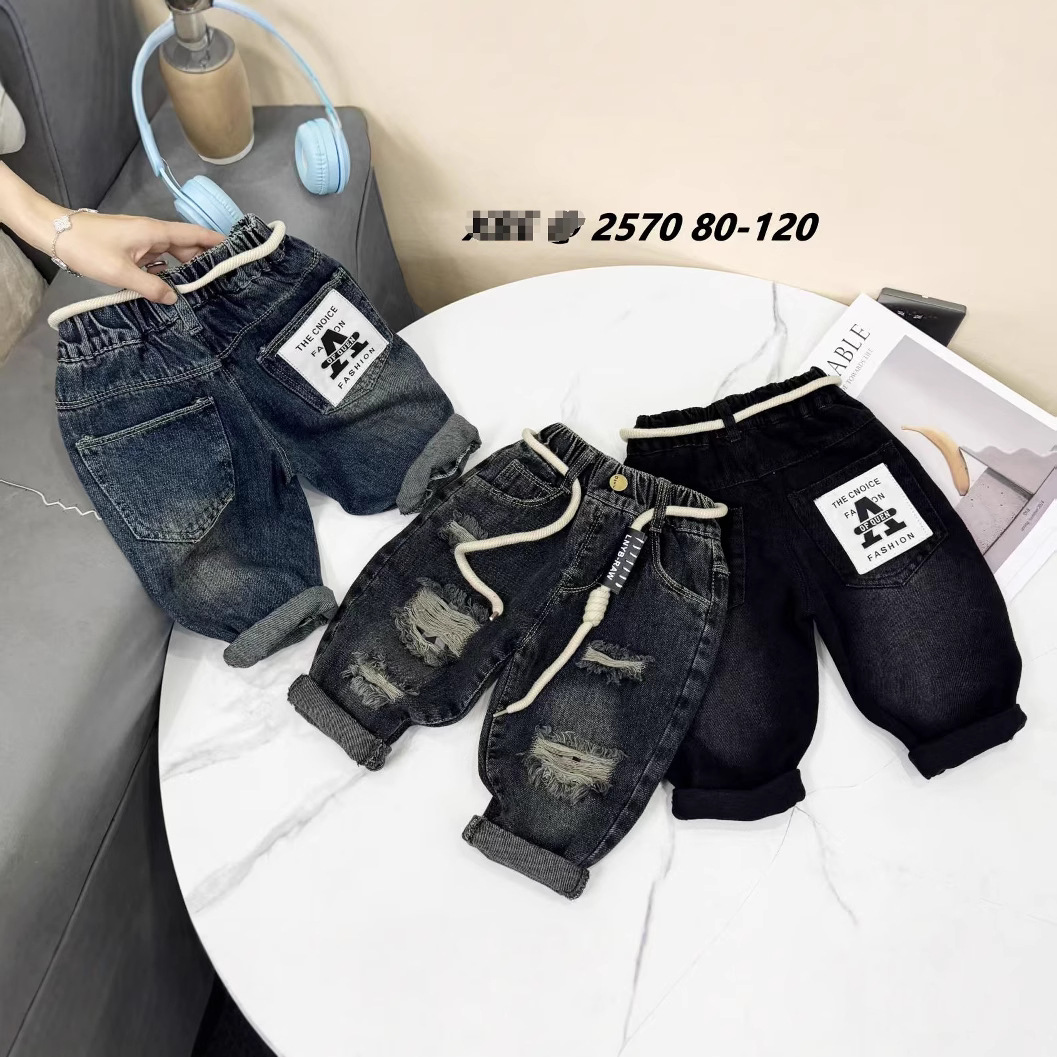 아동용 소프트 청바지 루즈 캐주얼 소년 와이드 팬츠 2025 새로운 가을 시즌 소년 의류 베이비스토어 가기