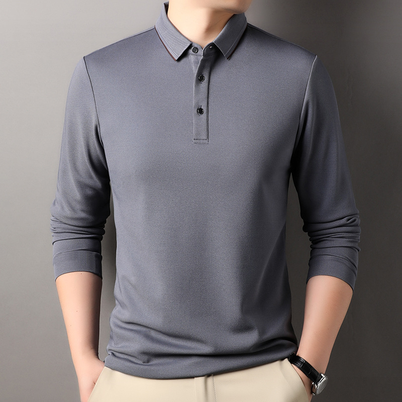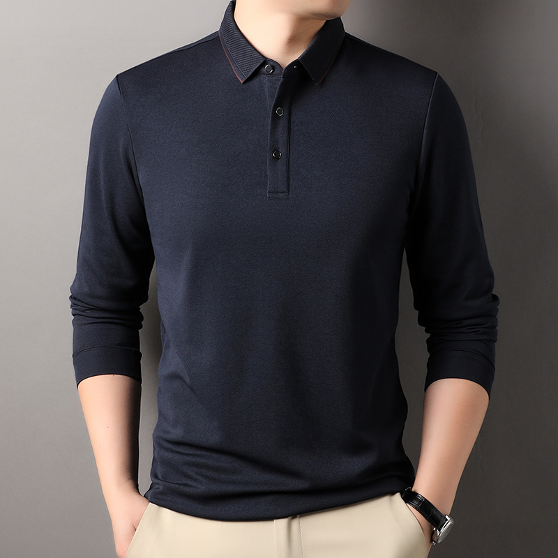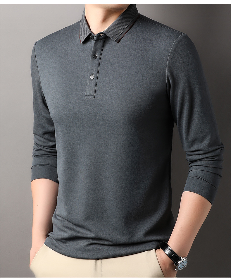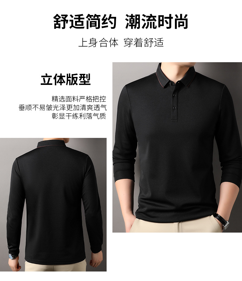 뽕나무 실크 울 폴로 셔츠 남성용 긴팔 2025 봄 새로운 중년 비즈니스 캐주얼 단색 긴팔 티셔츠 남성용스토어 가기