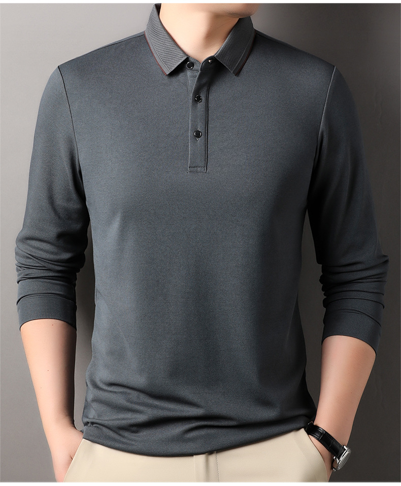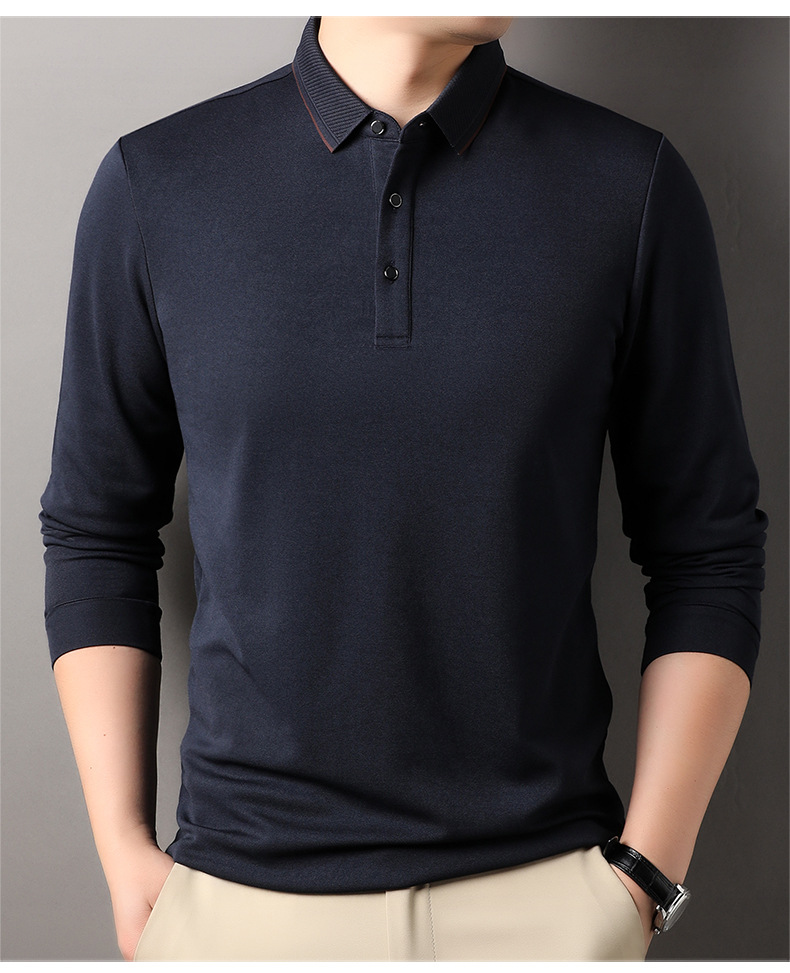 뽕나무 실크 울 폴로 셔츠 남성용 긴팔 2025 봄 새로운 중년 비즈니스 캐주얼 단색 긴팔 티셔츠 남성용