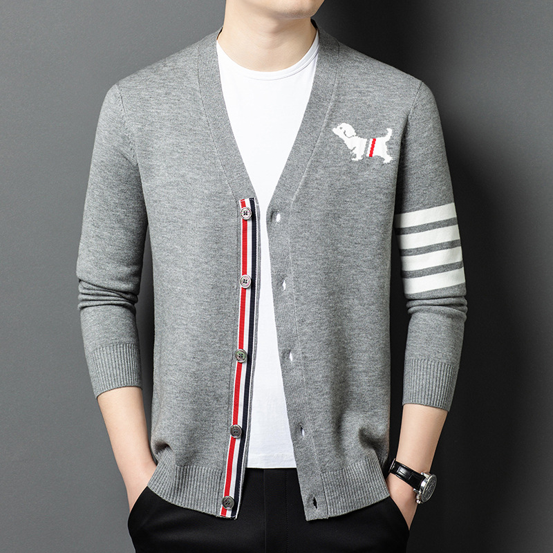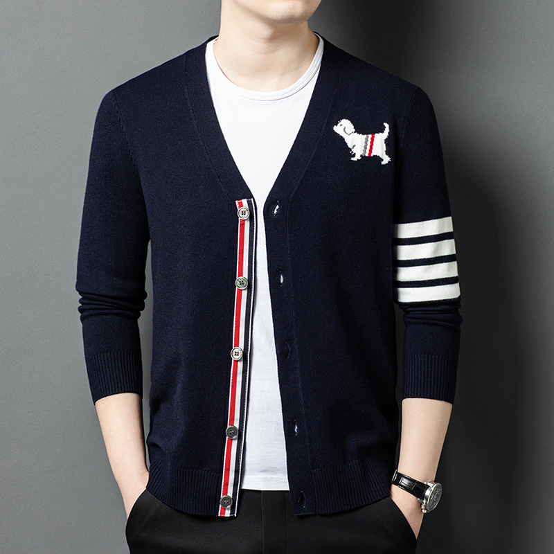 고급 자카드 니트 재킷 남자 2025 봄 새로운 청소년 패션 올 매치 스웨터 남자 카디건스토어 가기