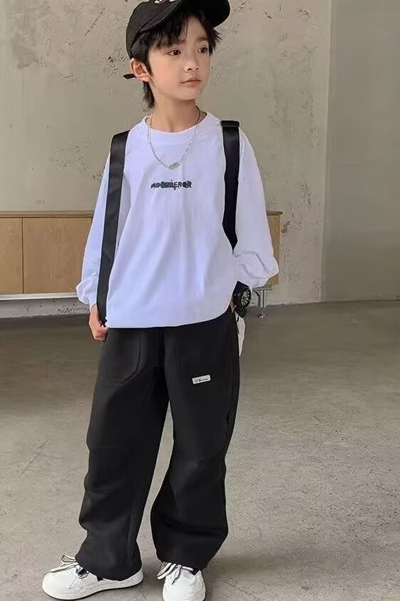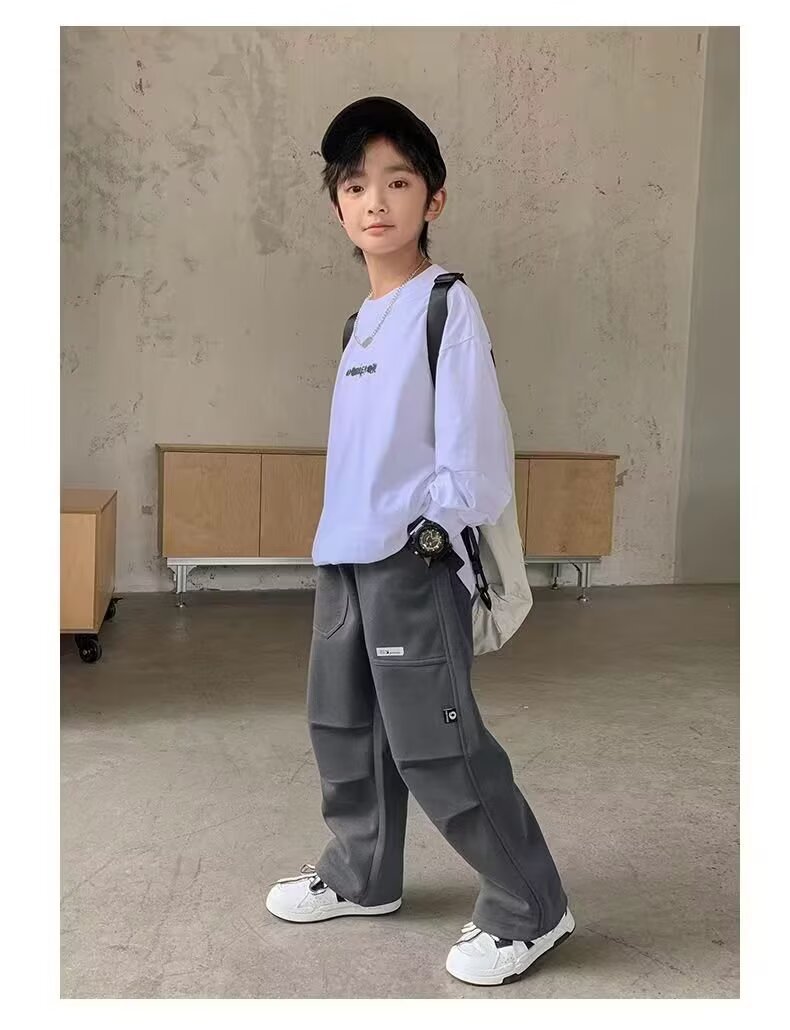 소년 바지 캐주얼 2025 년 봄과 가을 새로운 어린이 대형 스트레이트 다리 와이드 레그 바지 봄 조수 15 세 12
