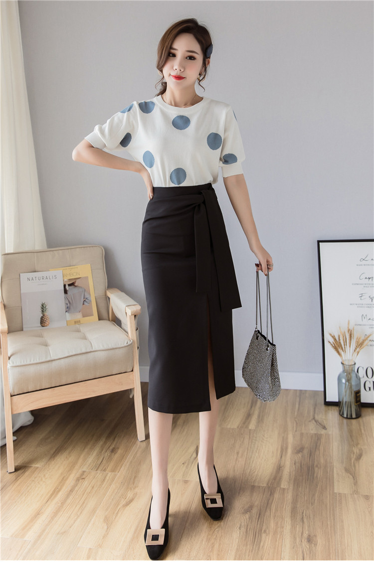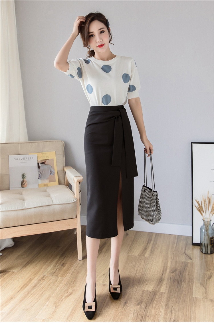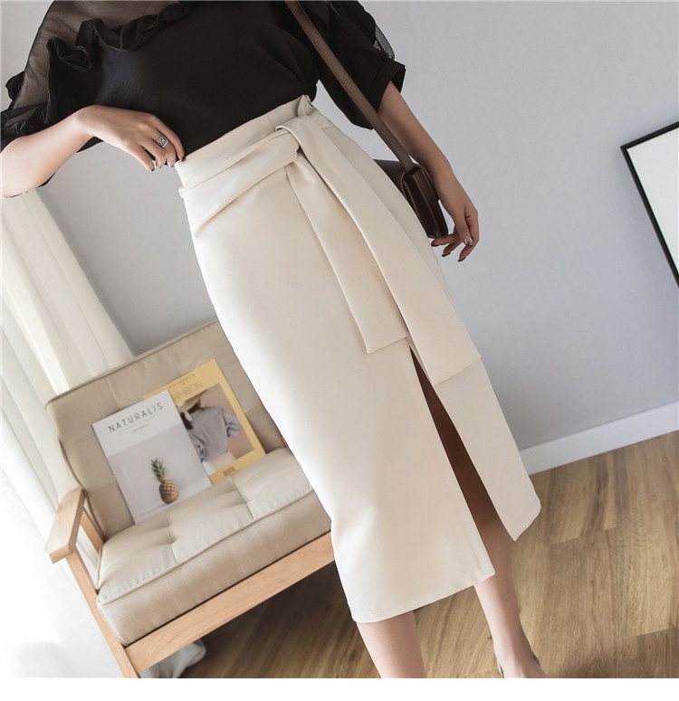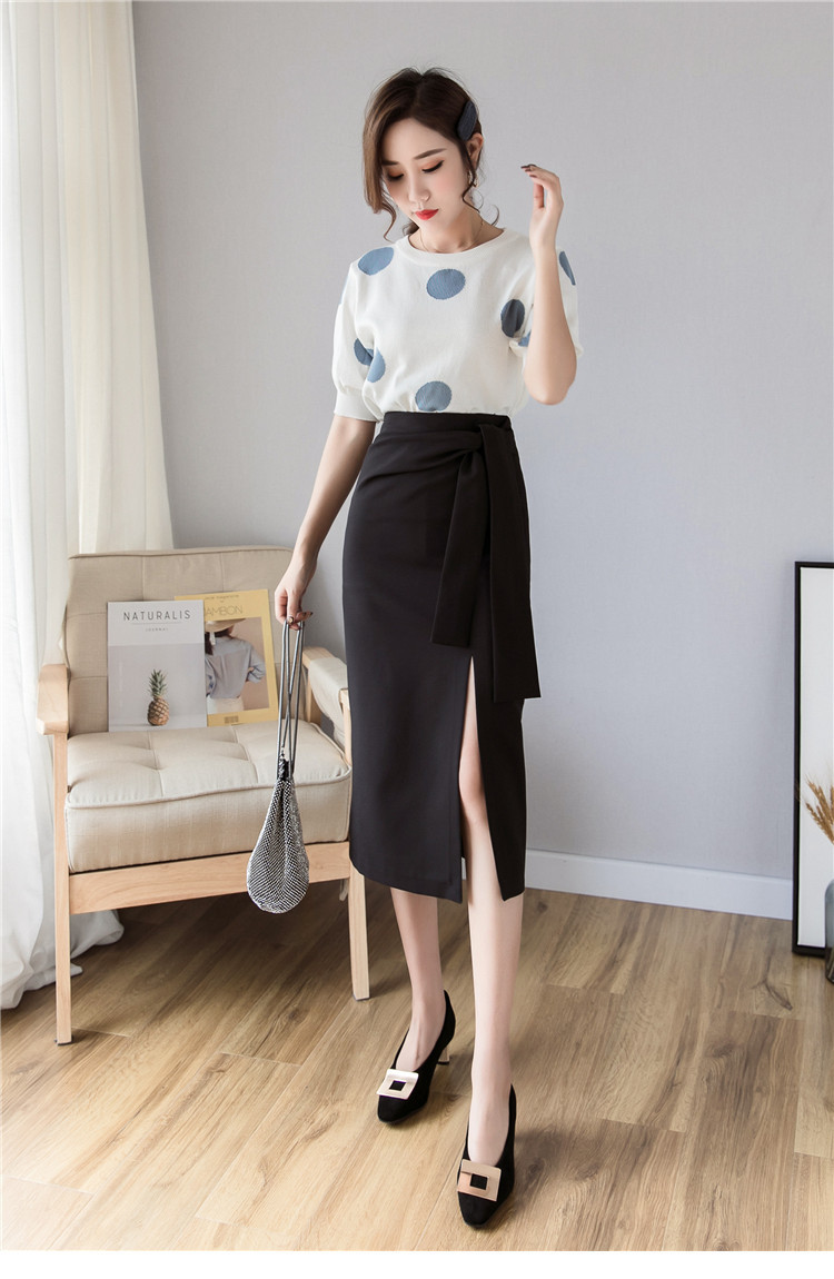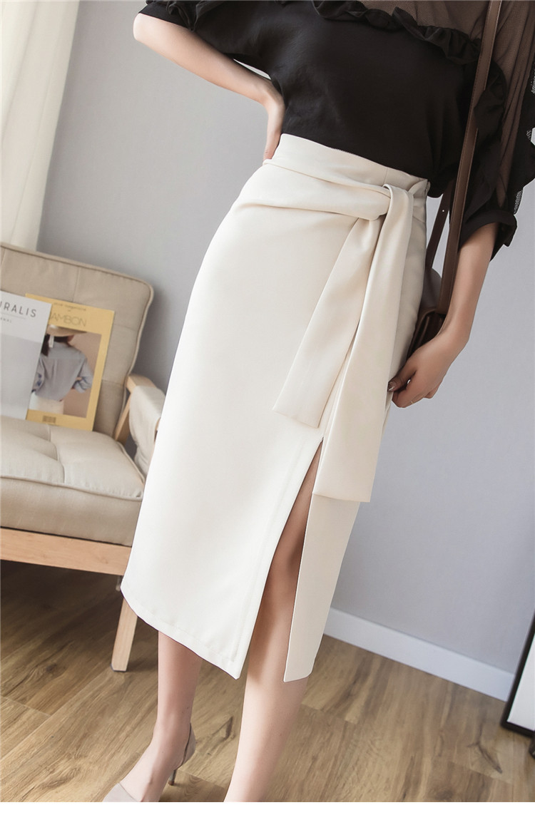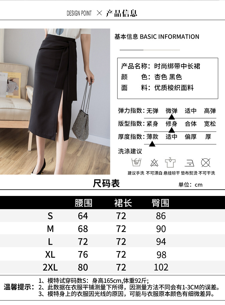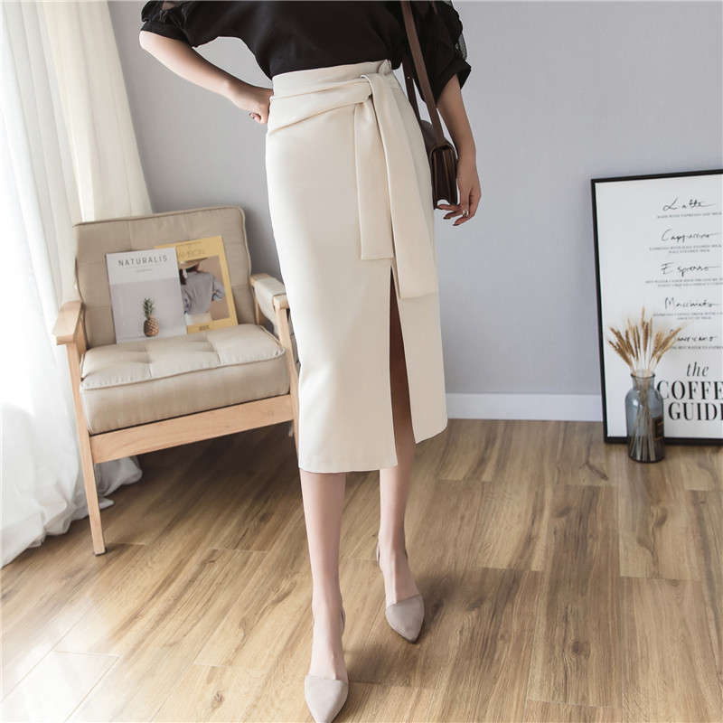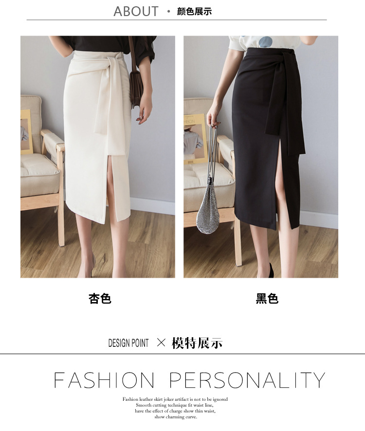 리얼 샷 봄과 여름 새로운 패션 올 매치 스트랩 중간 길이의 통근 스커트 슬림 핏 원스텝 스커트 스플릿 힙합 스커트