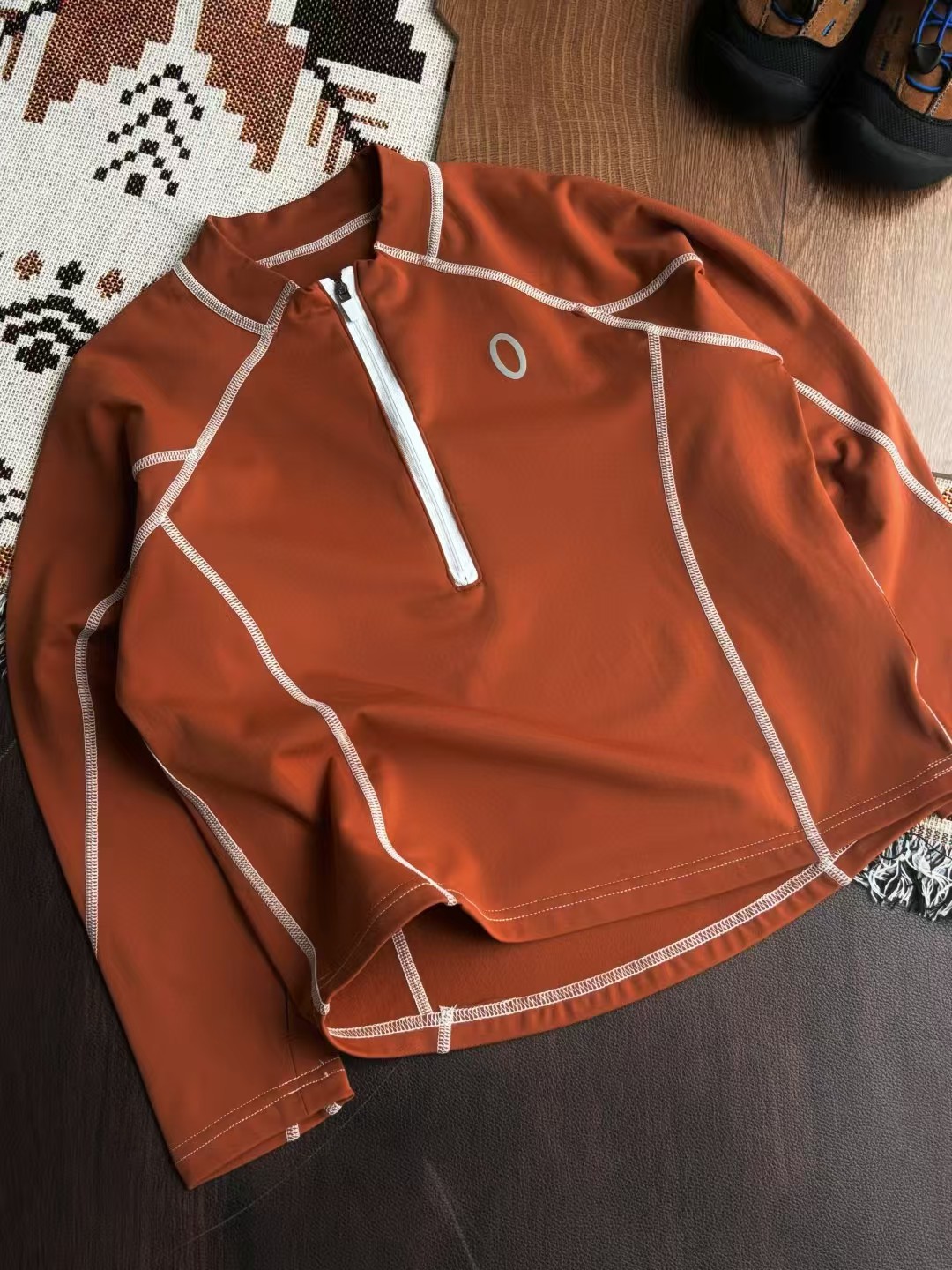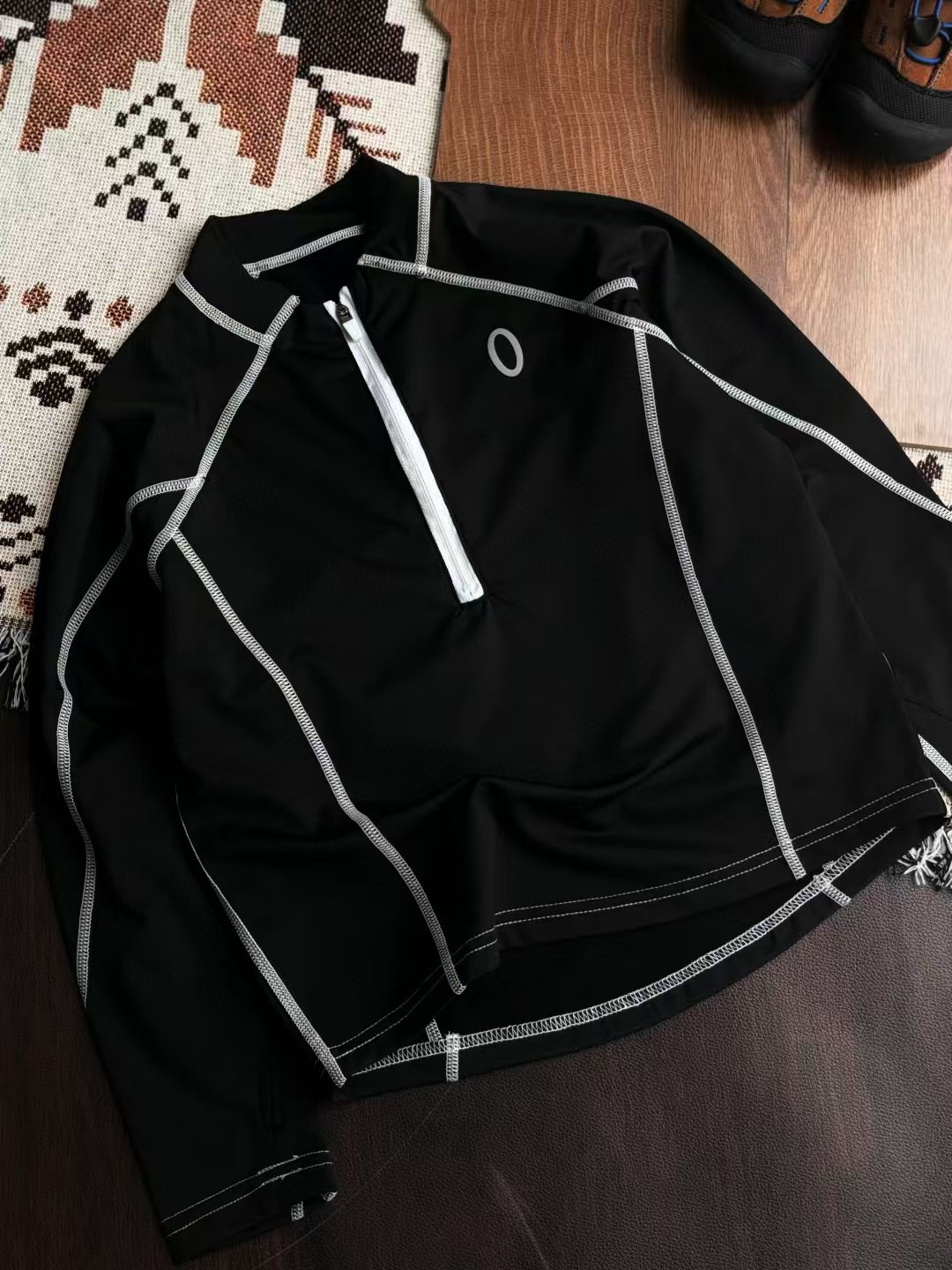 25ss 봄과 여름 새로운 cuchk 어린이 색상 대비 스티칭 반 지퍼 스탠드 칼라 소프트 왁스 같은 빠른 건조 긴 소매 티셔츠