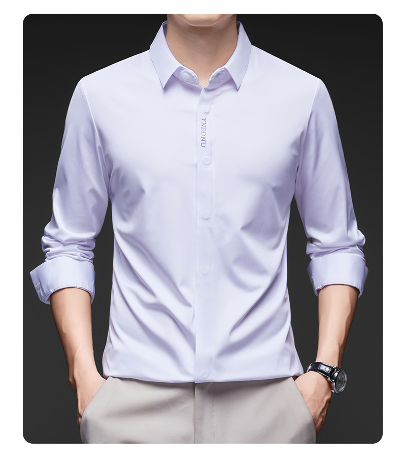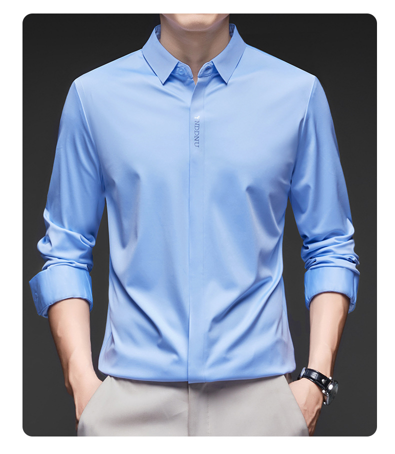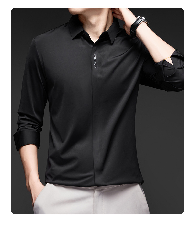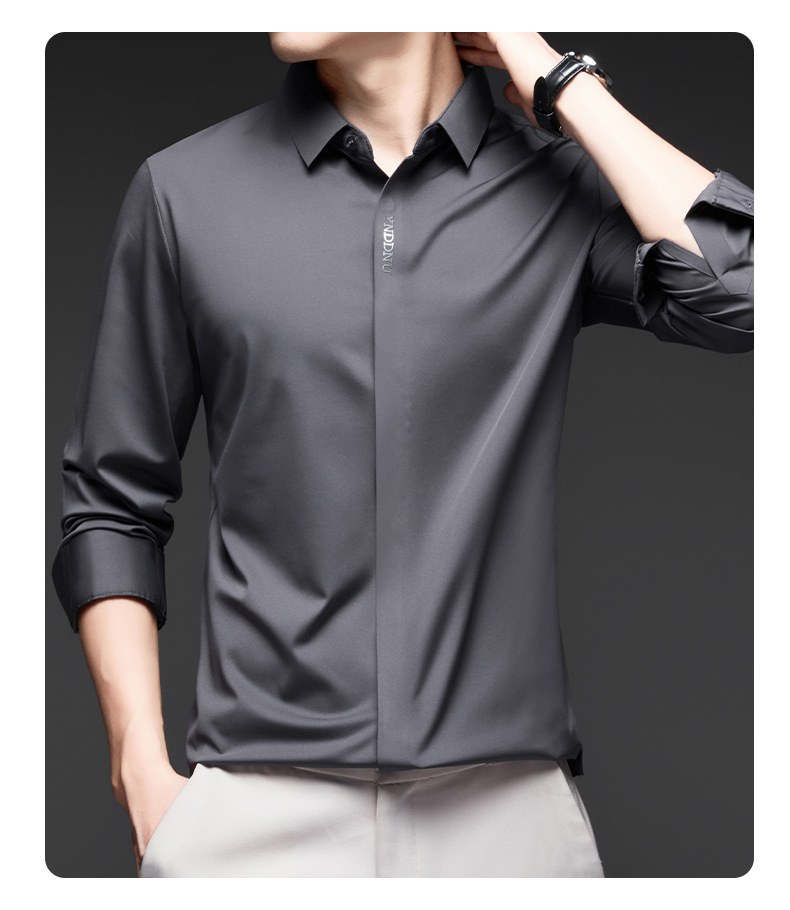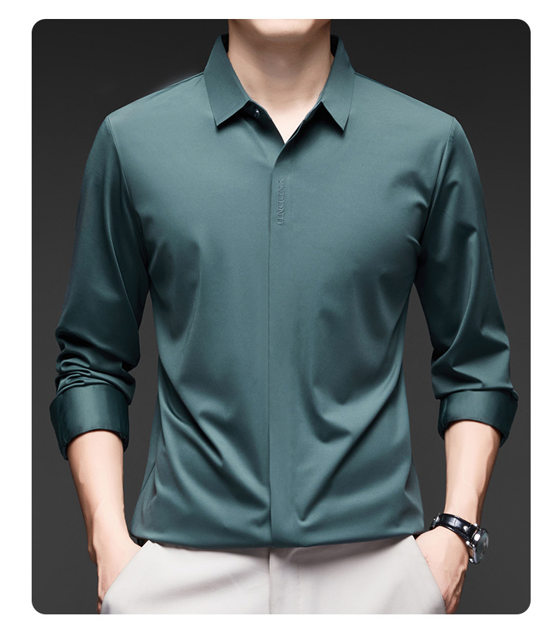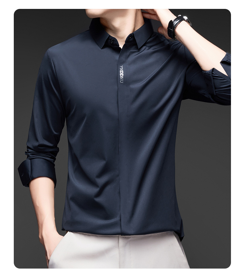 고급 다크 플래켓 원활한 고탄성 긴팔 셔츠 남성 중년 비즈니스 캐주얼 단색 올 매치 남성용 셔츠스토어 가기