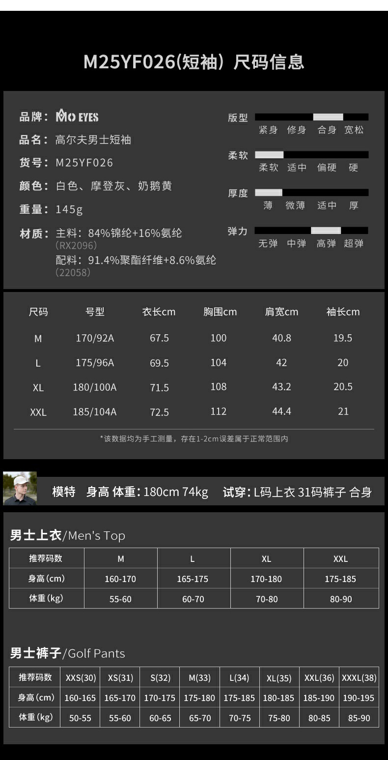 MO EYES 매직 아이 골프 의류 남성 봄과 여름 반팔 티셔츠 운동복 통기성 탑 폴로 셔츠