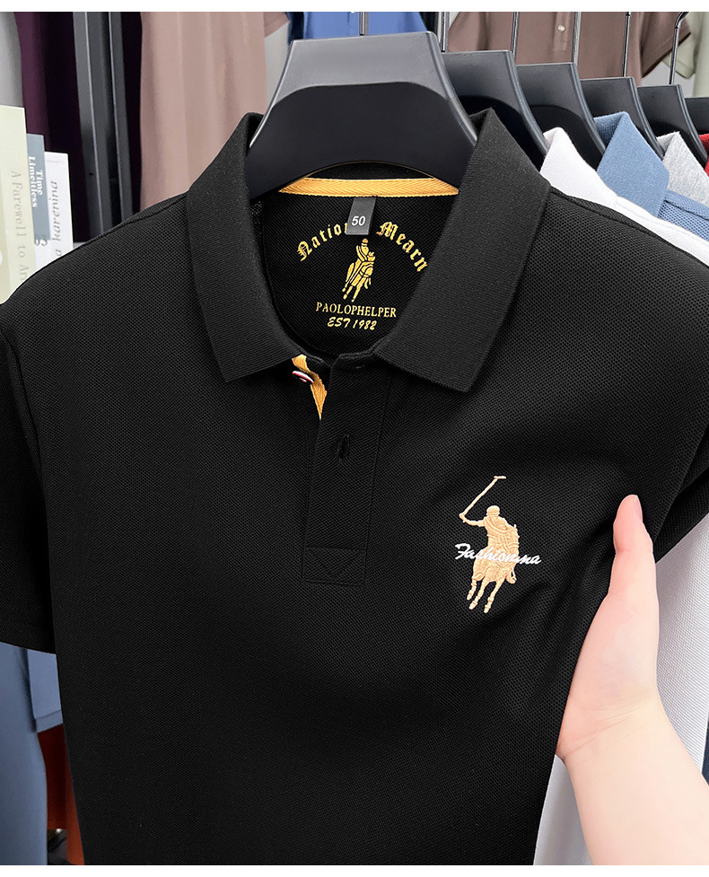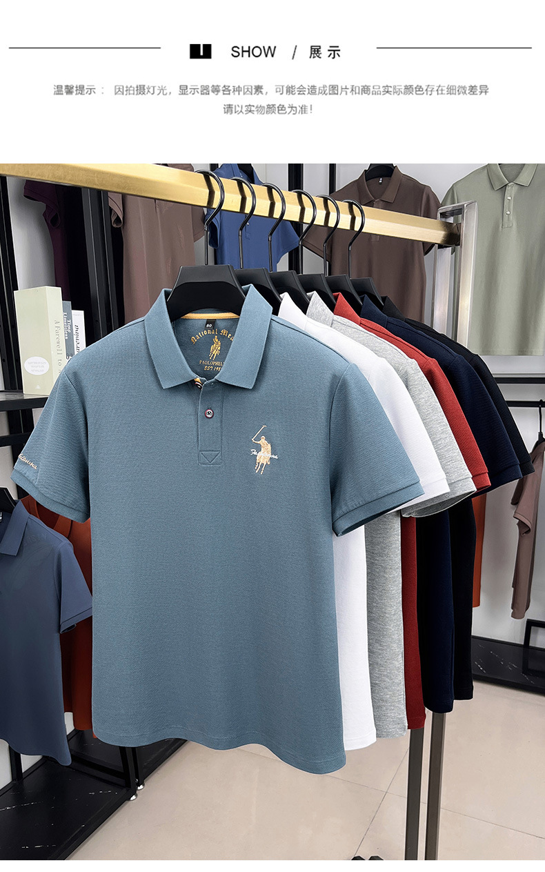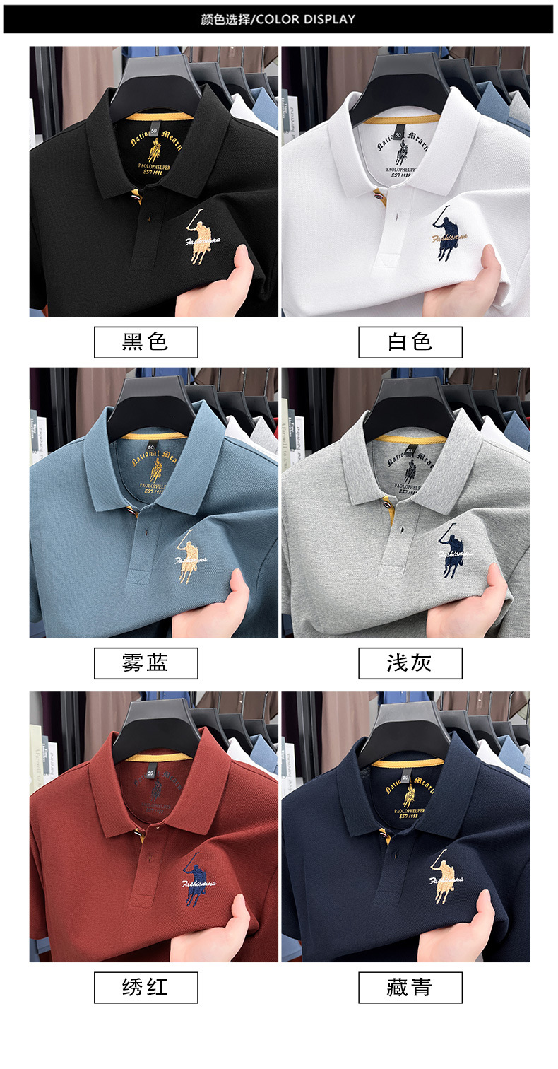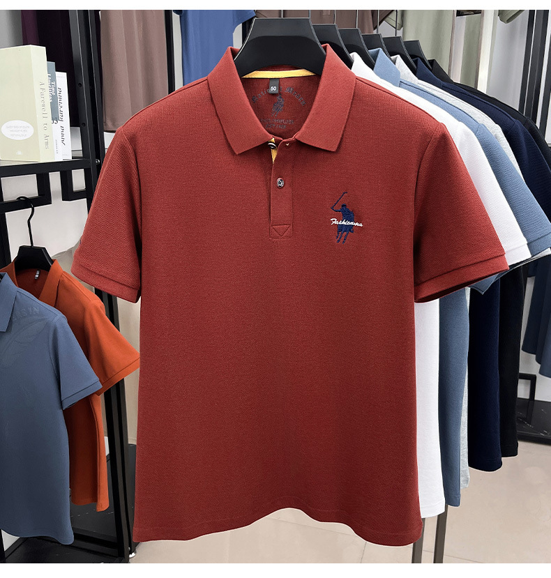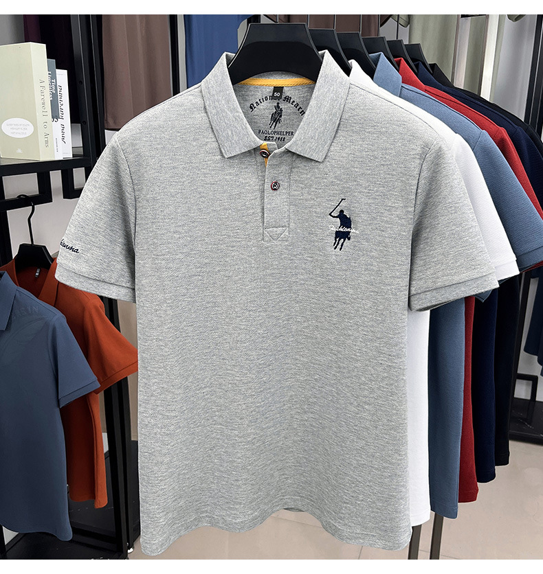 머서리화 된면 반팔 폴로 셔츠 남자 2025 년 여름 새로운 비즈니스 캐주얼 단색 자수 옷깃 남성 티셔츠스토어 가기