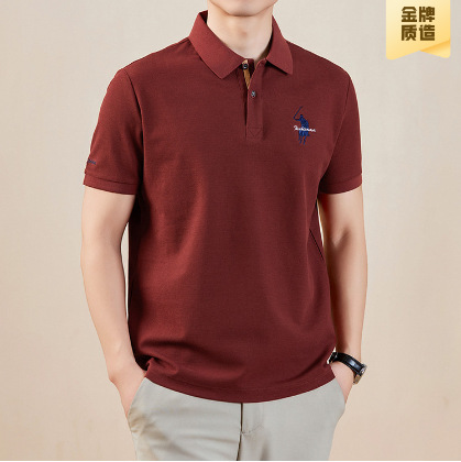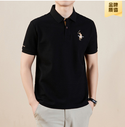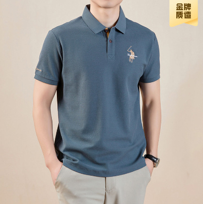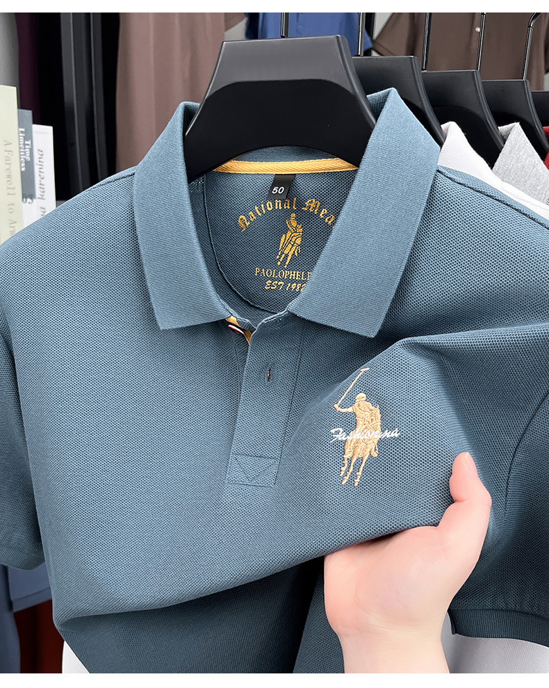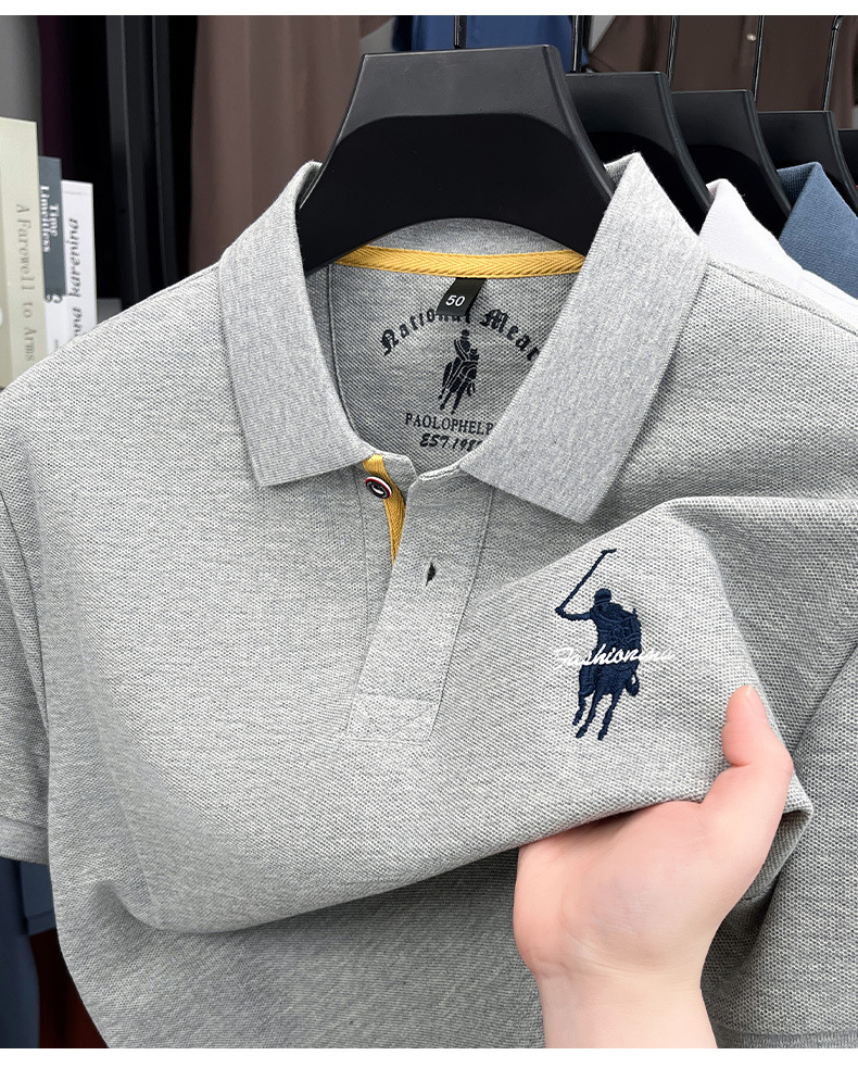 머서리화 된면 반팔 폴로 셔츠 남자 2025 년 여름 새로운 비즈니스 캐주얼 단색 자수 옷깃 남성 티셔츠