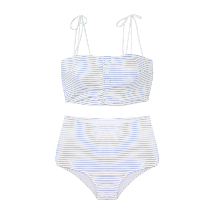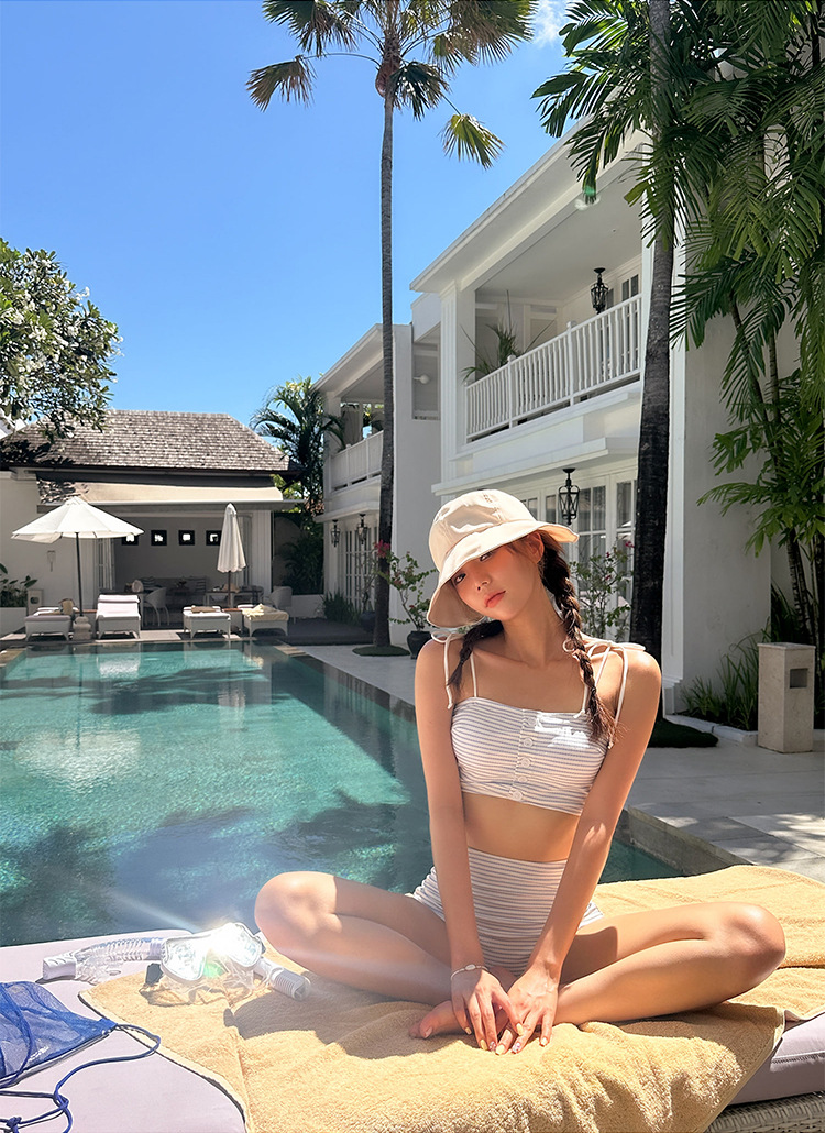 섹시한 비키니 달콤한 소녀 레트로 스트라이프 사이즈 가슴 푸시 업 높은 허리 슬링 스플릿 수영복 여성의 여름