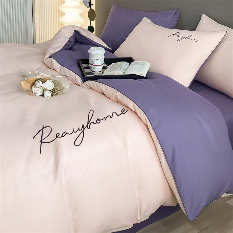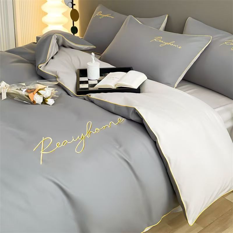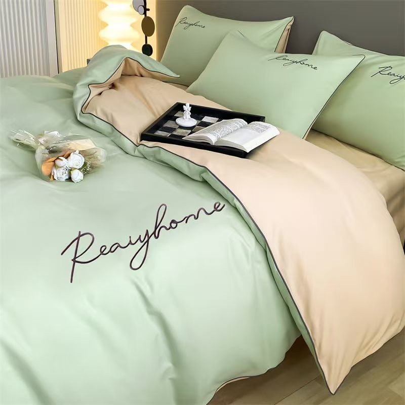 가벼운 럭셔리 하이 엔드 센스 새로운 100 세척 코튼 4 피스 세트 퀼트 커버 침대 시트 침대 커버 홈 학생 기숙사 3 피스 세트